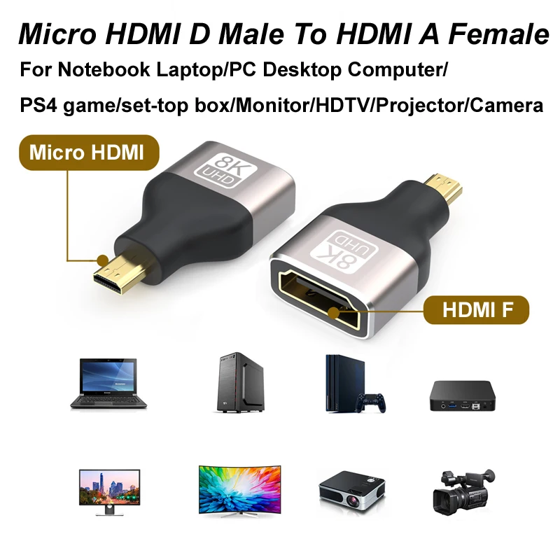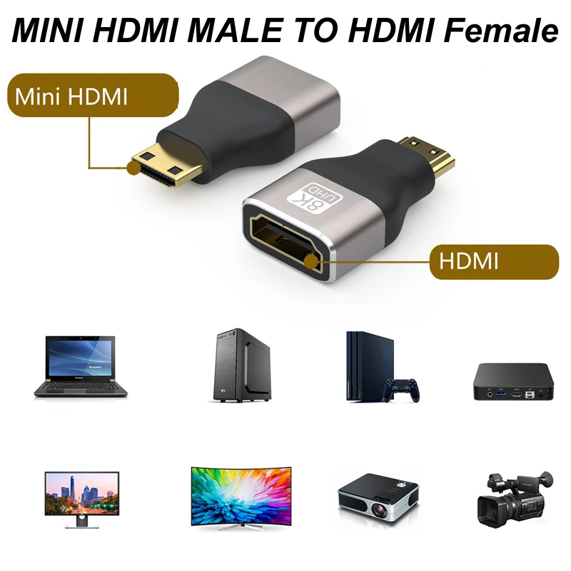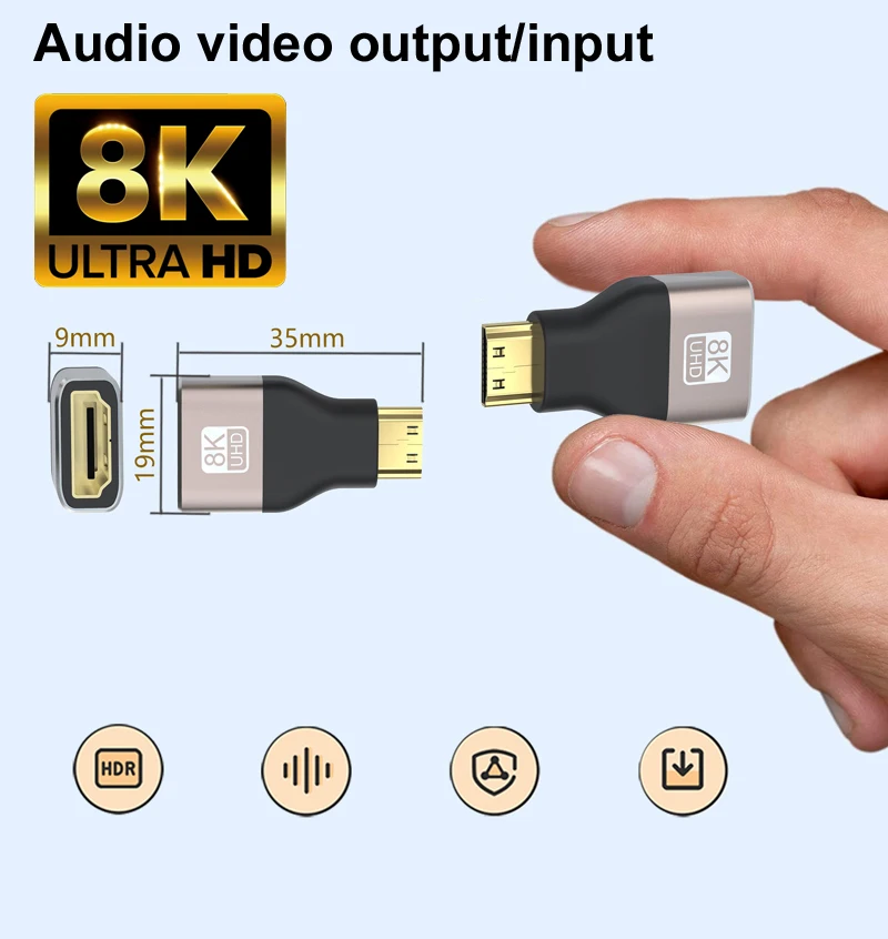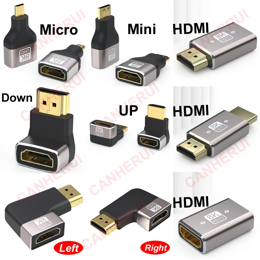 Comprar 8K @ 60Hz MINI HDMI/MICRO HDMI codo de 90 grados arriba/abajo/izquierda/derecha a HDMI 2,1 convertidor de Cable de Audio y vídeo hembra para ordenador portátil y PC