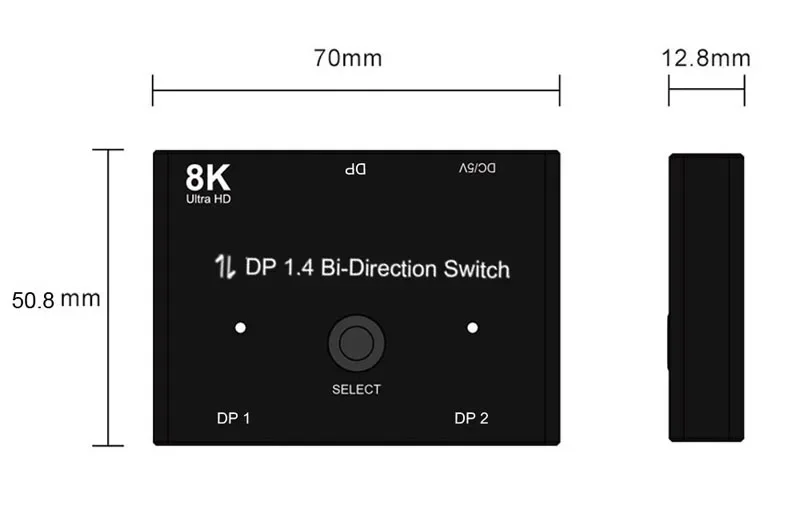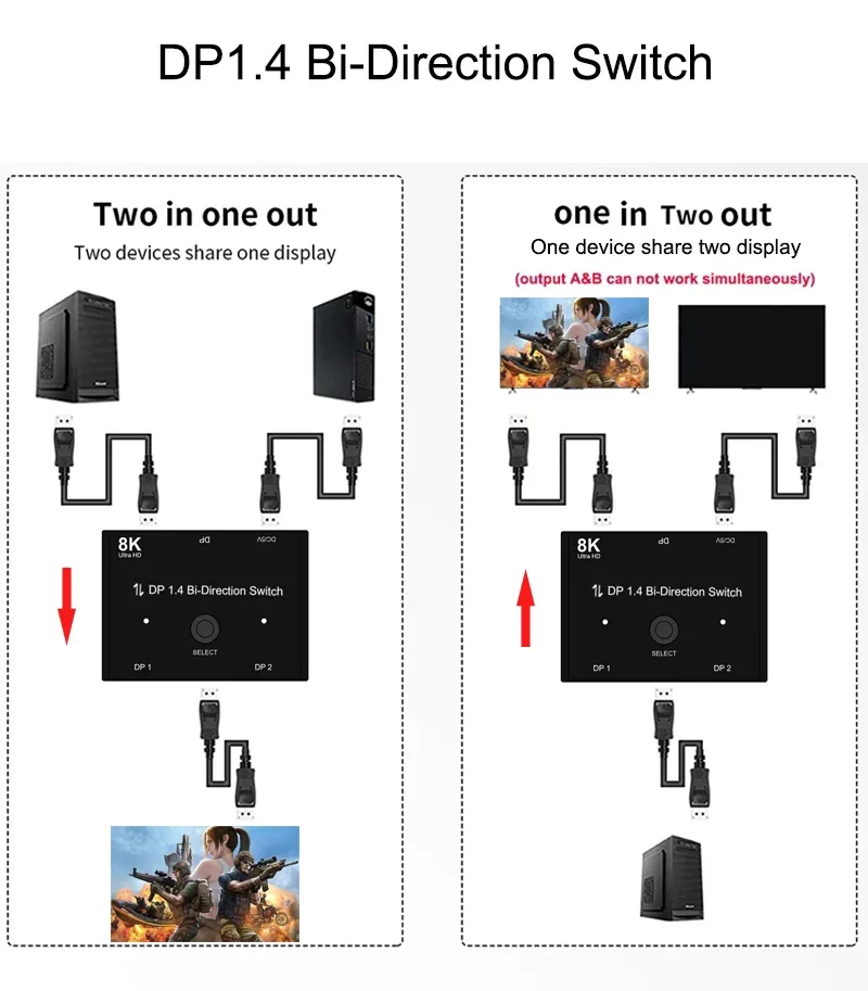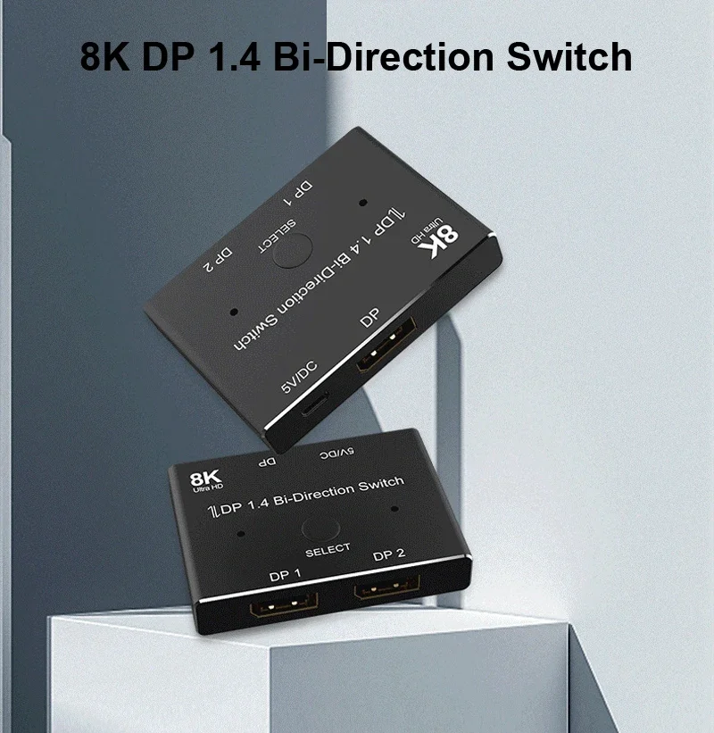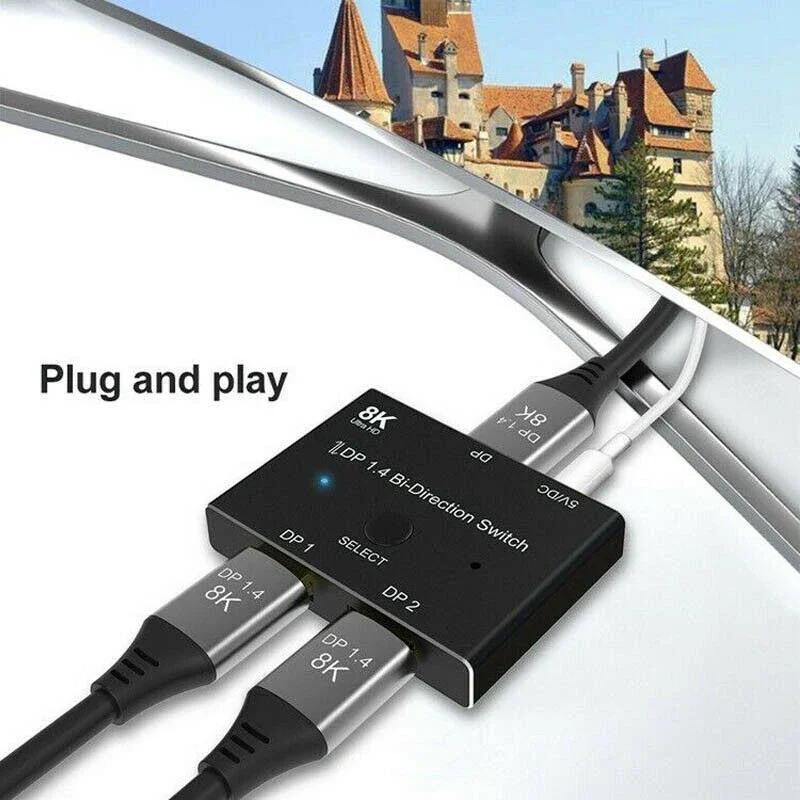 Contenido del paquete: 1 interruptor DP1.4 de 8K. 1 cable de alimentación USB. 1 guía del usuario. Sin caja de venta al por menor ni otros accesorios, si es necesario, contáctenos antes de comprar.