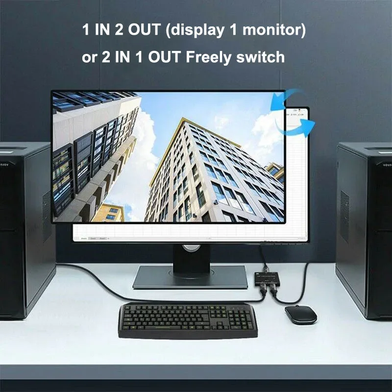 Nota: 1.Este es un interruptor.Cuando un dispositivo de fuente de vídeo está conectado a dos monitores. dos monitores no pueden mostrarse al mismo tiempo.Sólo se puede cambiar entre dos monitores.