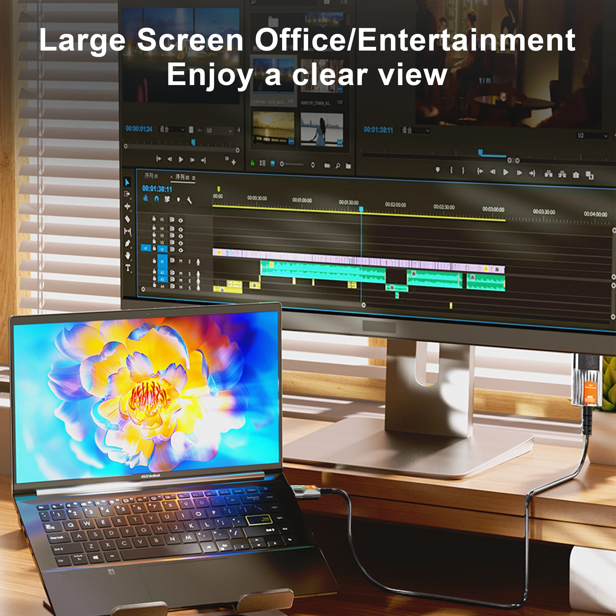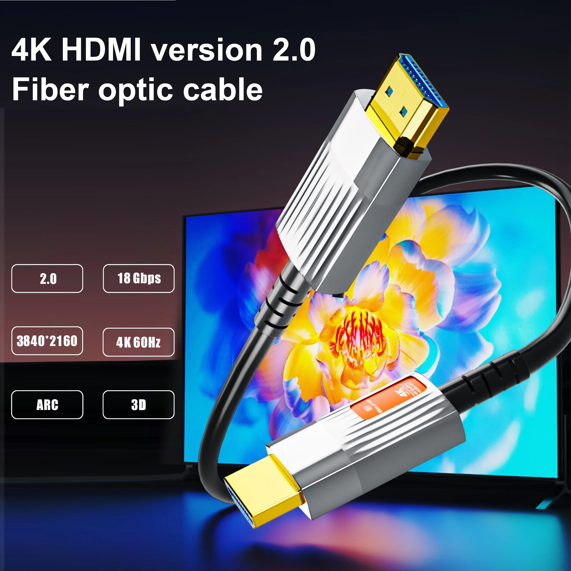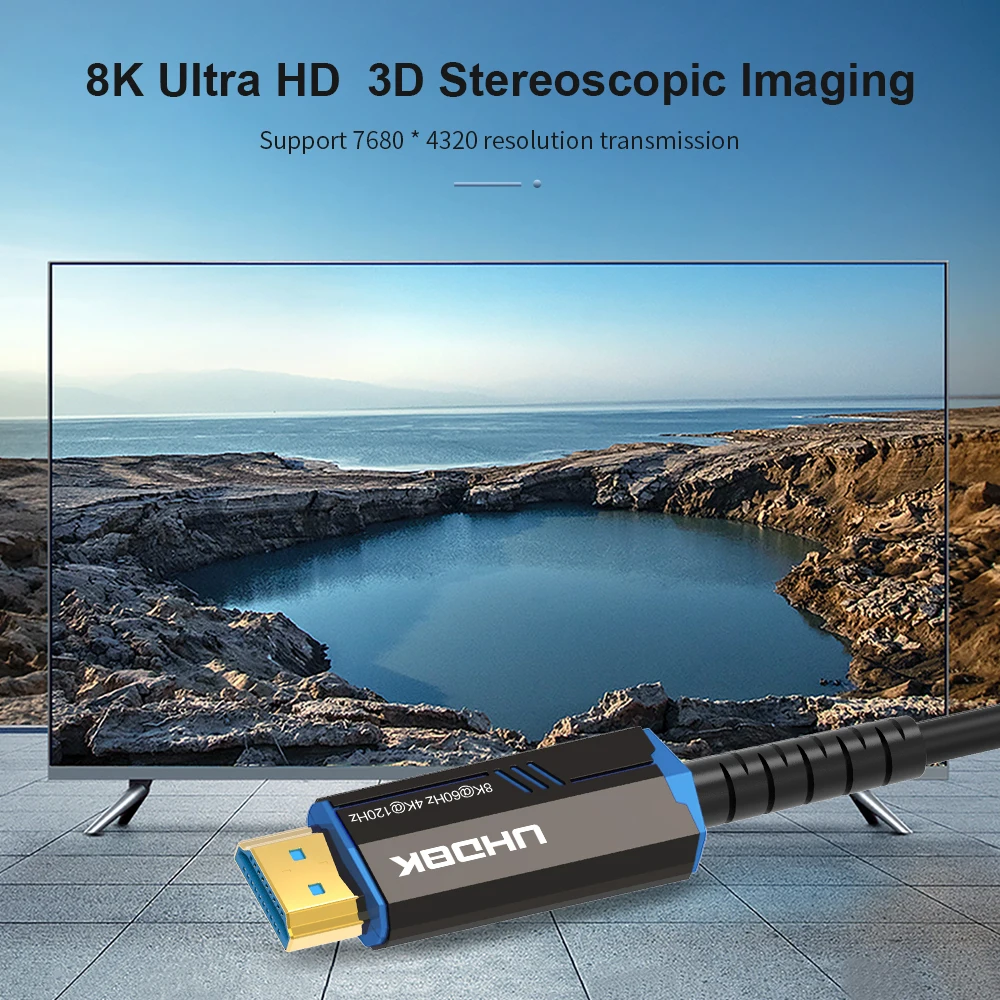 Cable HDMI de fibra óptica de 8K: Realiza transmisión de audio y vídeo de ultra larga distancia, sin compresión de señal, sin demoras en la transmisión de velocidad de la luz, sin interferencias electromagnéticas y sin radiación.Es compatible con 8K@60HZ y 4K@120HZ.