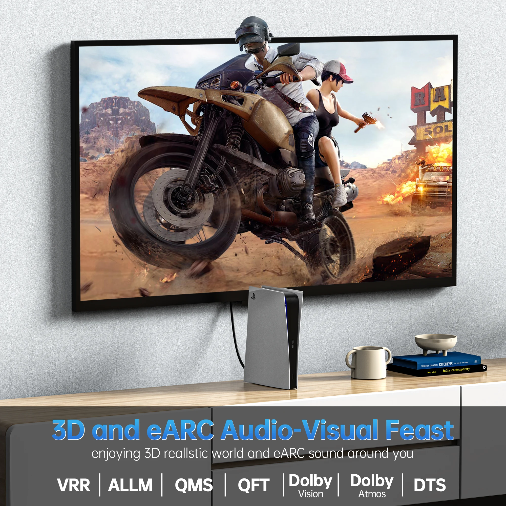 Para entusiastas del juego: este cable HDMI de ultra alta velocidad de 8K puede lograr una imagen súper fluida de 4K a 120HZ.Su último modo de juego admite una frecuencia de actualización variable, maximiza el valor de la tarjeta gráfica y la CPU para obtener una imagen más fluida y detallada.
