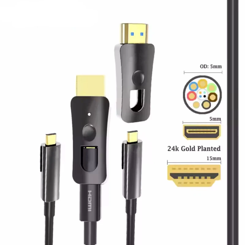 Note: There are 2 versions of fiber optic cables, HDMI-compatible 2.1 (8K@60Hz, 4K@120hz) and HDMI-compatible 2.0 (4K@60hz).