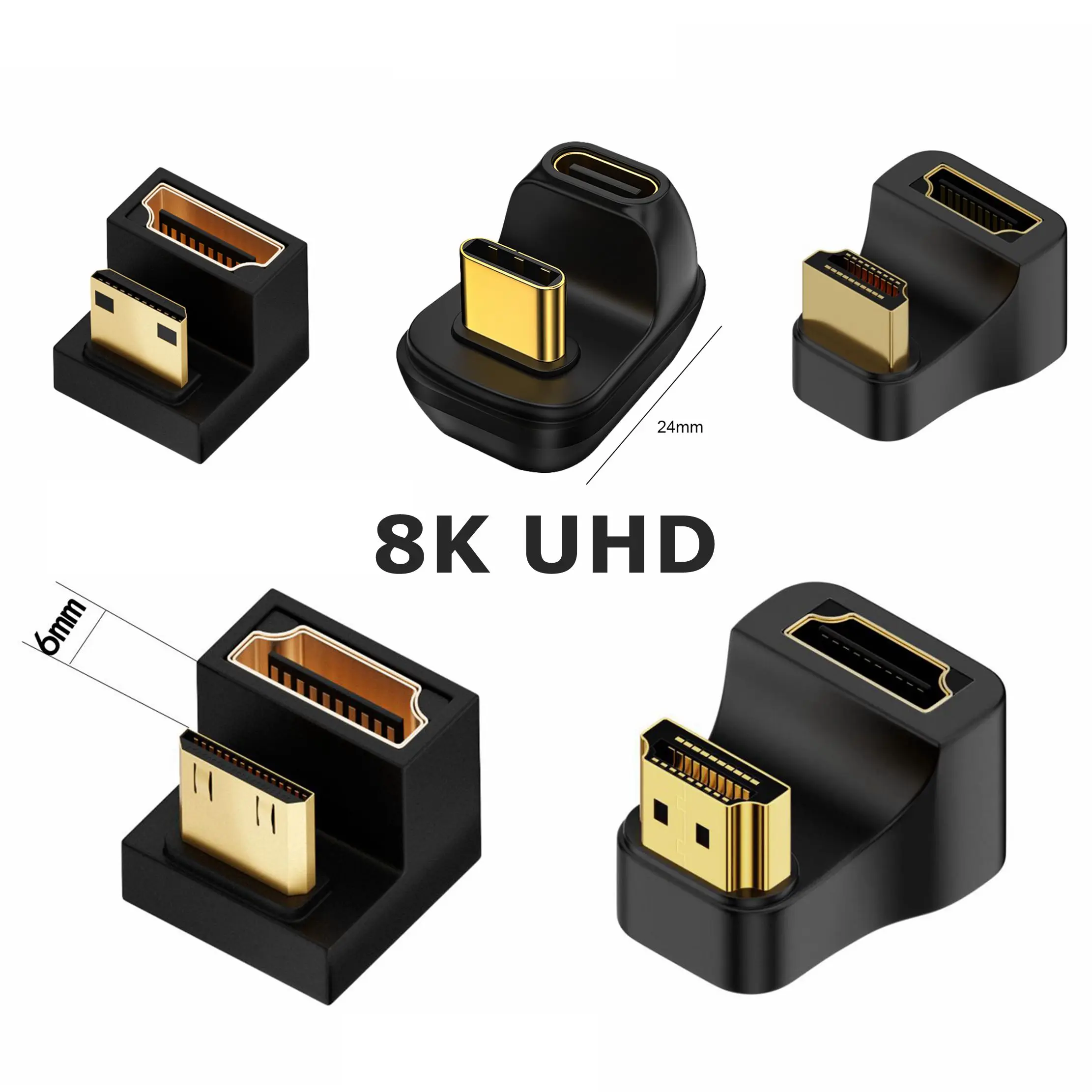 Comprar 8k hdmi 4K 120Hz 270 adaptador en ángulo de 90 grados Mni Micro a HDMI Compatible con forma de U tipo L divisor HDMI convertidor macho a hembra