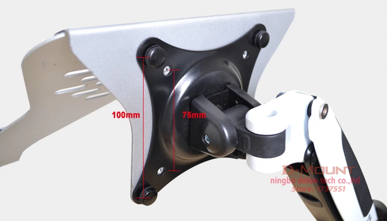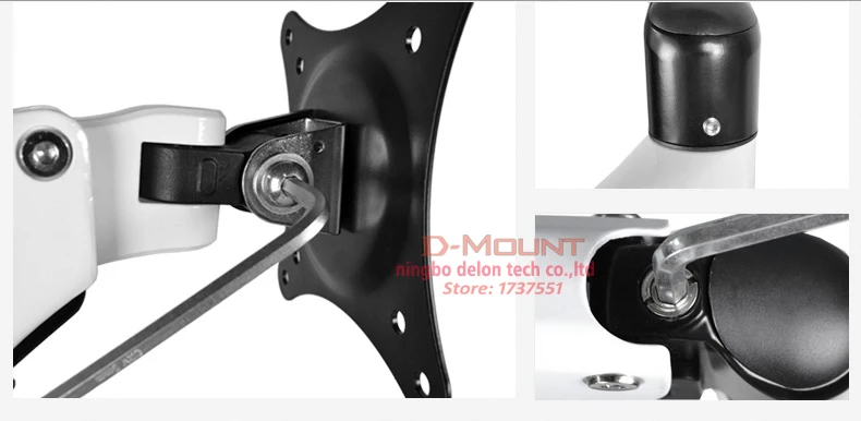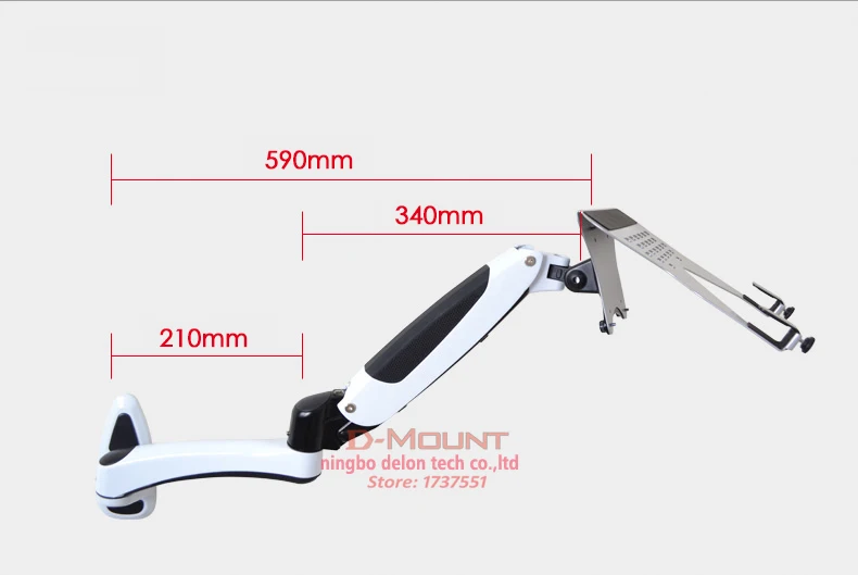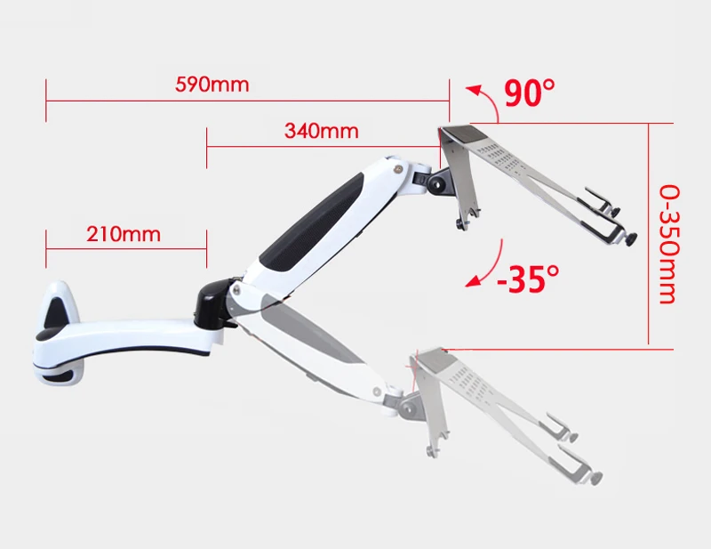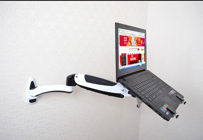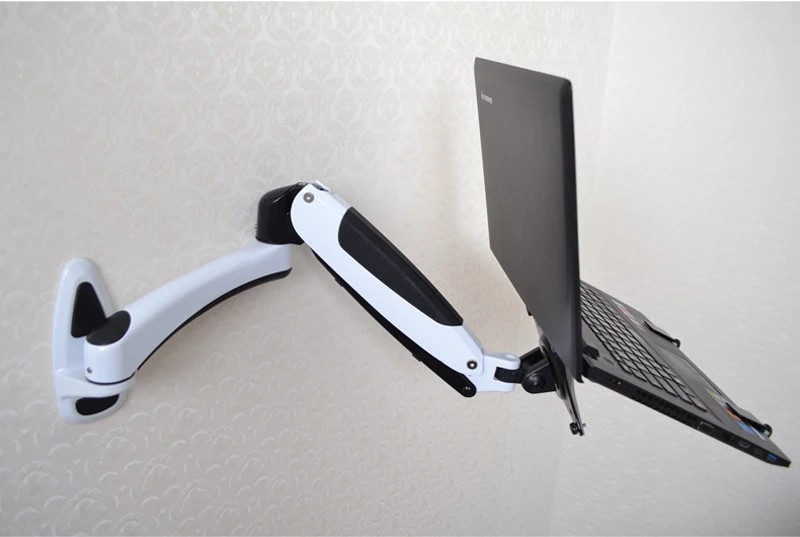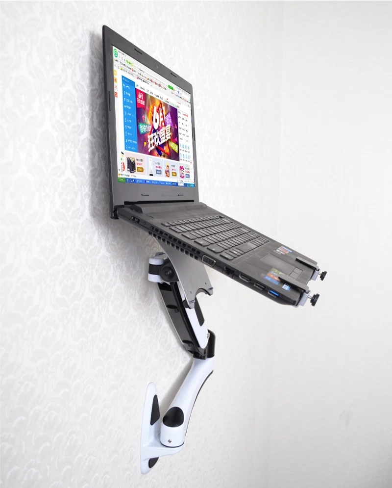 Comprar 8KG GM112W-LP1 resorte de gas de aluminio de movimiento completo doble brazo portátil soporte montado en la pared ojal abrazadera con orificio bandeja para portátil
