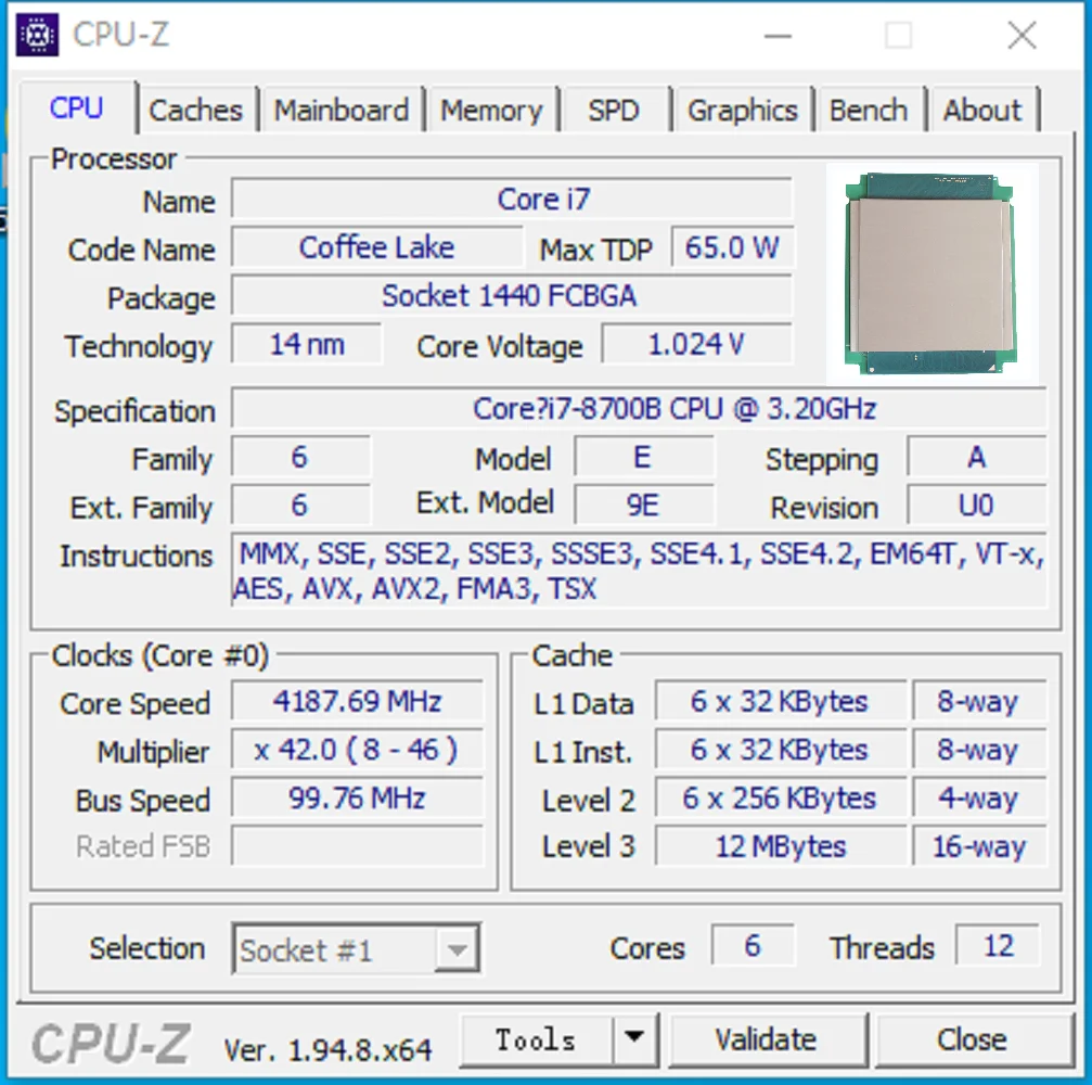 Número de procesador: Procesador Core 8th Coffee Lake i7-8700B SRCX2 CPU modificada
