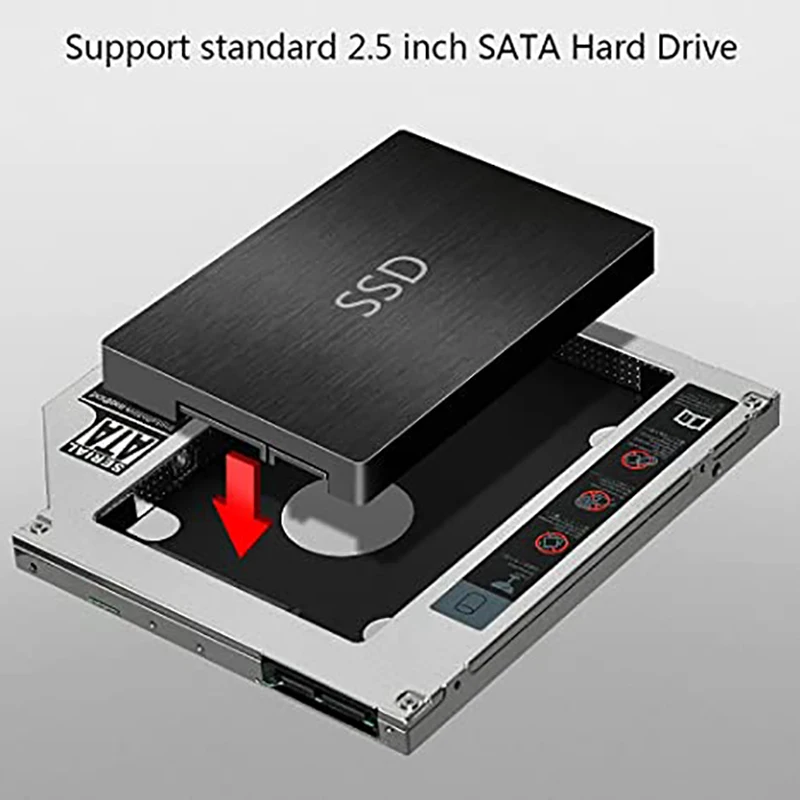 5.El segundo Caddy/Adaptador de unidad de disco duro le brinda la máxima flexibilidad de almacenamiento de datos.Con el segundo HDD en su computadora portátil,