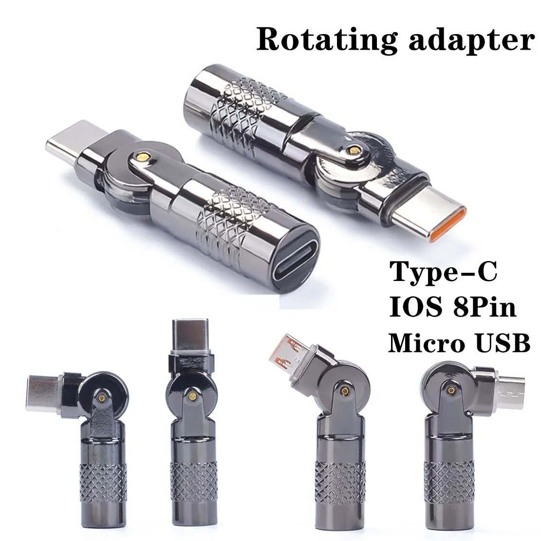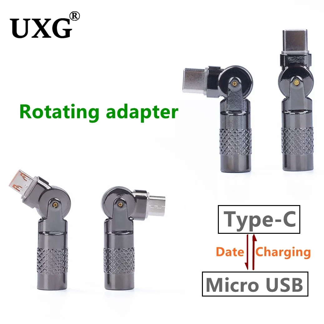 Comprar 90 270 grados de rotación codo en ángulo recto tipo C Usb-c a Micro USB adaptador de datos de carga rápido 3A/5A adaptador luminoso giratorio