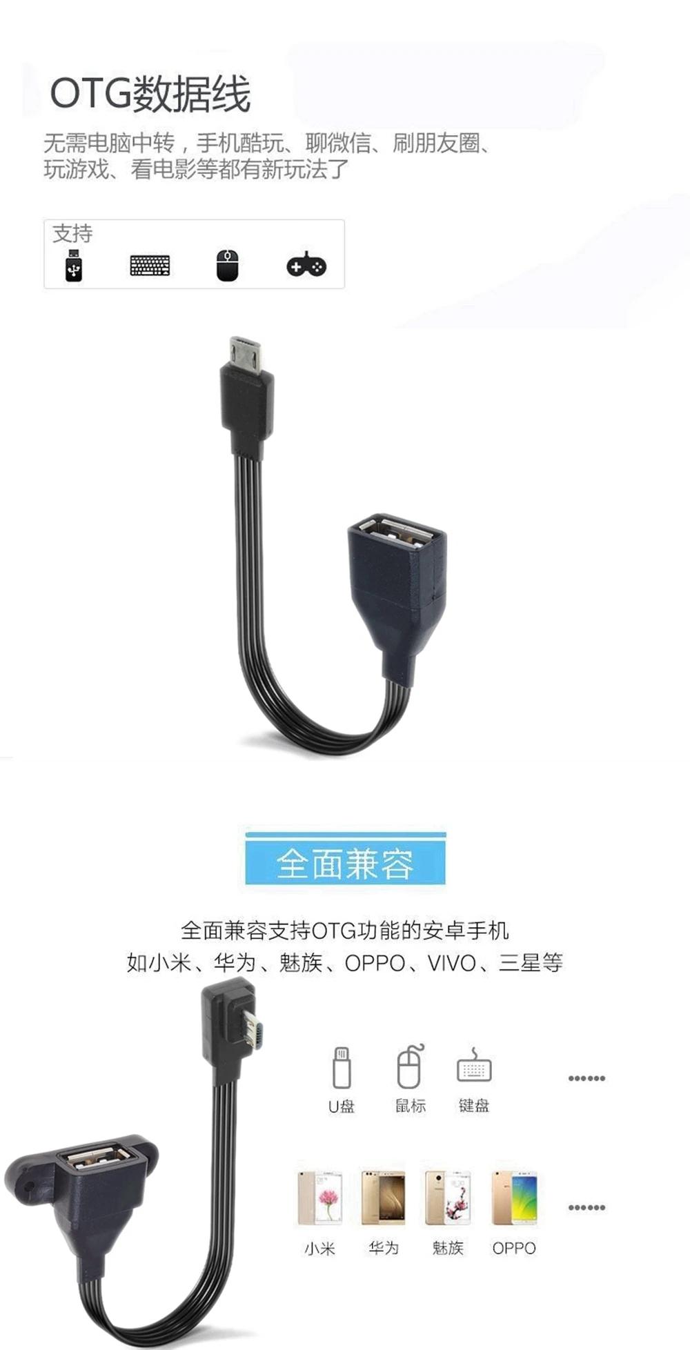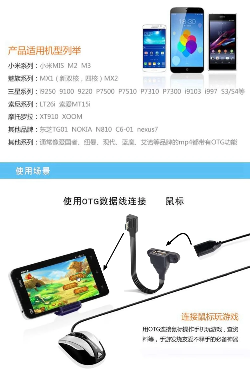 Comprar 90 ° Ángulo USB 2.0 una hembra a Micro 5 pines USB B enchufe ángulo recto OTG Cable adaptador corto 10CM 20CM