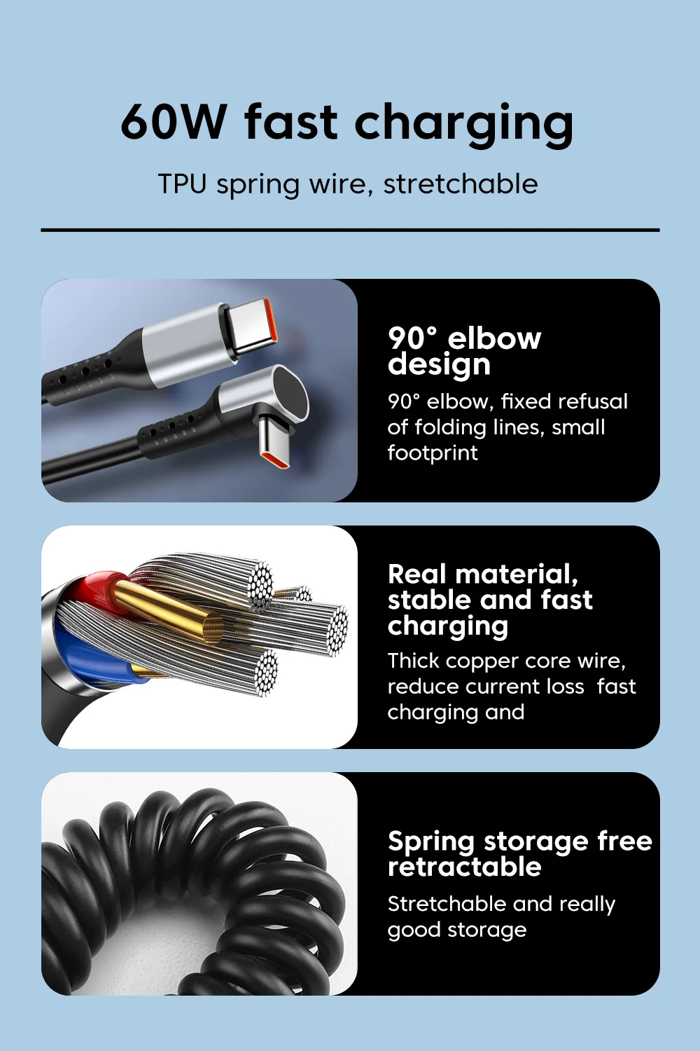 Note: there are two types of spring cable, one is usb A to c, the other istype c to type c, please check it carefully before placing this order, thank u