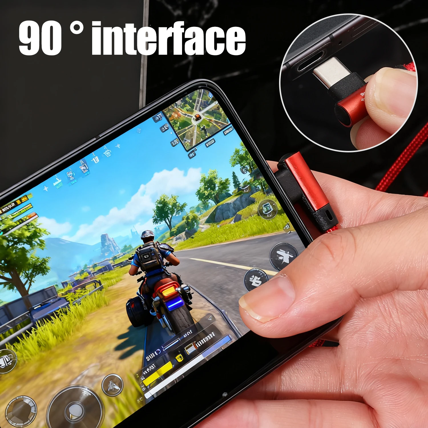 【TIPO C DE ÁNGULO DERECHO】: Cuenta con un práctico conector tipo C de ángulo recto, ideal para jugar mientras se carga.Evita que los cables se doblen, lo que agrega una gran comodidad para el juego telefónico.