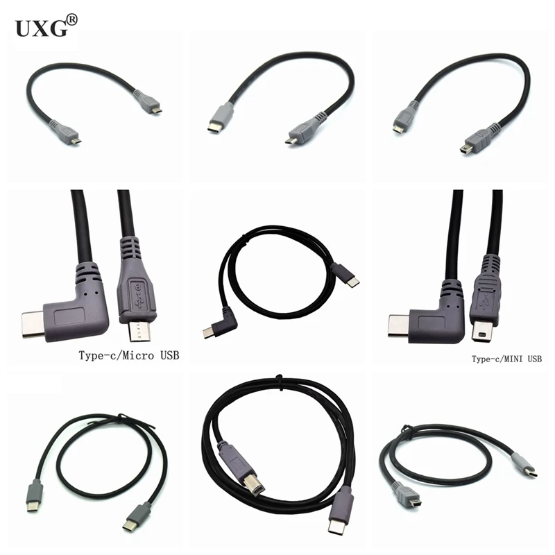 Comprar 90 en ángulo recto USB 3,1 tipo C macho a Micro Mini USB 5 pines B convertidor de enchufe macho adaptador OTG Cable de datos para móvil VR Mac