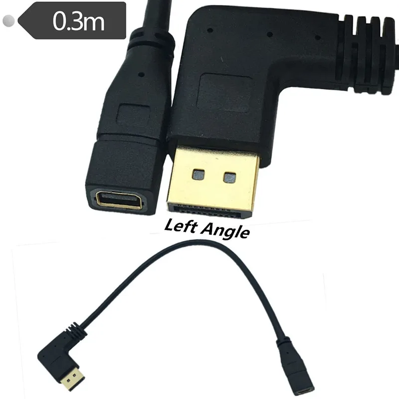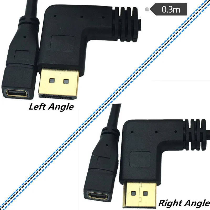 Comprar 90 grados codo izquierdo derecho DP línea macho a Mini Displayport hembra 4K cable de conexión 1,2 HDdisplayport cable de extensión 0,3 m