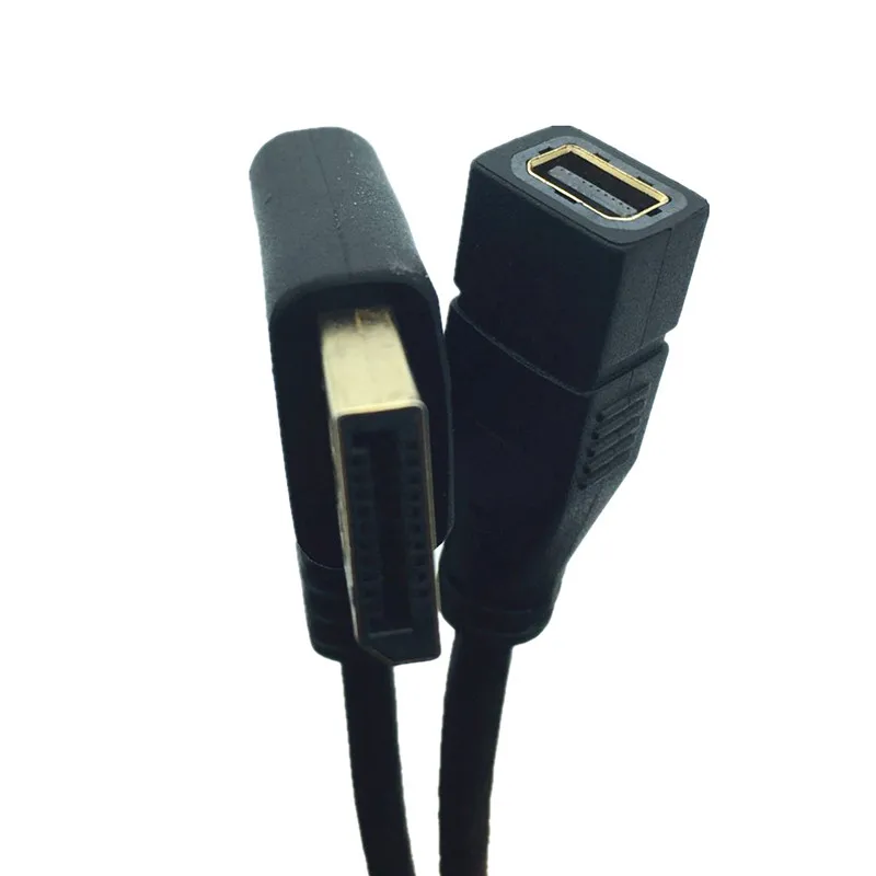 DisplayPort Dorado Masculino 90° Ángulo a mini displayport Cable de extensión hembra 0,3 mLínea dp de codo izquierdo y derecho de 90 grados chapada en oro, cable de conexión 4K macho a hembra, línea de extensión de pantalla HD 1.2 de 0,3 mVersión: DP 1.2Resolución: hasta 4K*2K; Admite pantalla 3D estereoscópica Full HD, resolución 3840*2160, HD cuádruple 1080Uso: Extienda la tarjeta gráfica.La interfaz DP de la pantalla reduce el número de conexiones y desconexión del dispositivo y protege el enchufe del producto.Aplicable a: transmisión ampliada entre dispositivos como computadoras de escritorio con interfaz DP y dispositivos como televisores, monitores, proyectores, etc. con interfaz DP