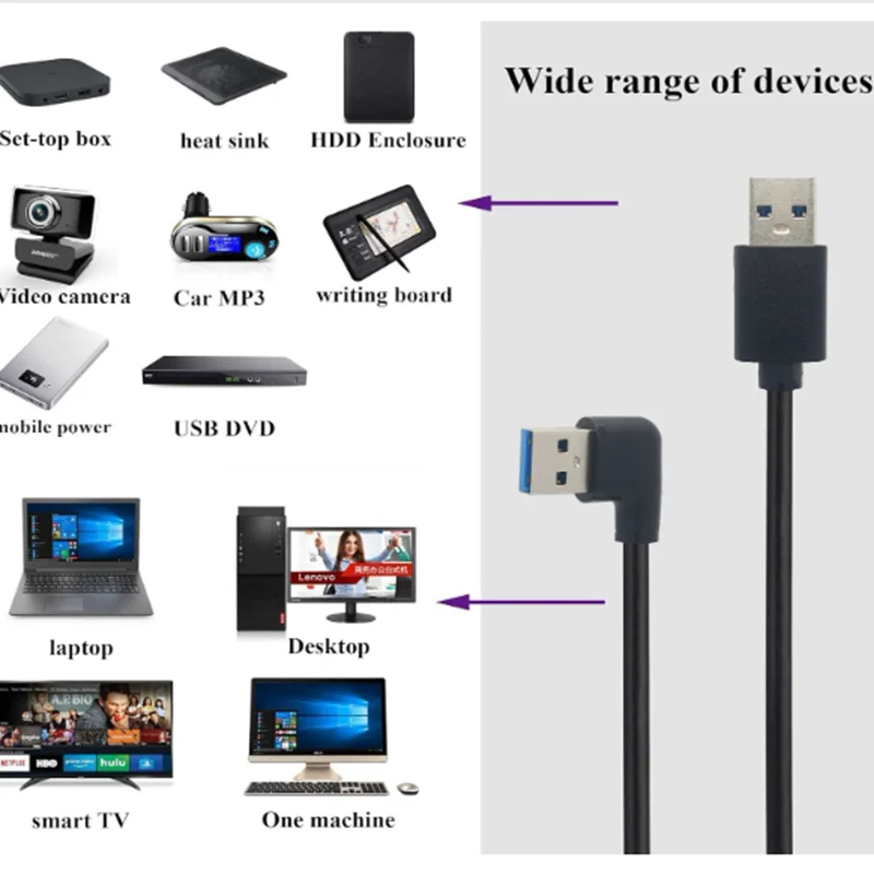 Cable de datos USB 3.0 tipo A macho a recto 3,0 tipo A macho de 5 Gbps en ángulo de 90 grados