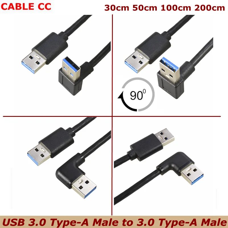 Comprar 90 grados USB macho a macho 5Gbps datos usb3.0 arriba abajo izquierda ángulo recto USB un Cable tipo A macho a recto 3,0 tipo A macho