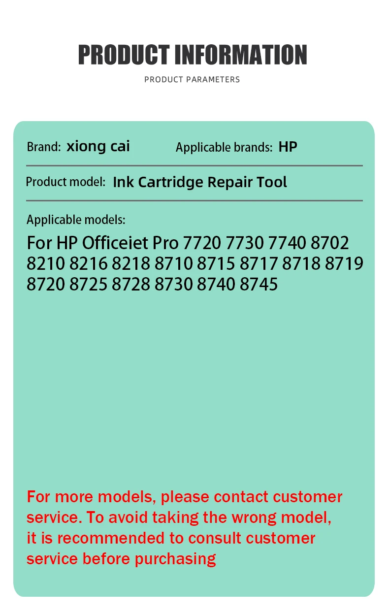 Modelo aplicable: Para HP Officeiet Pro 7720 7730 7740 8702 8210 8216 8218 8710 8717 8718 8719 8720 8725 8728 8740 8745