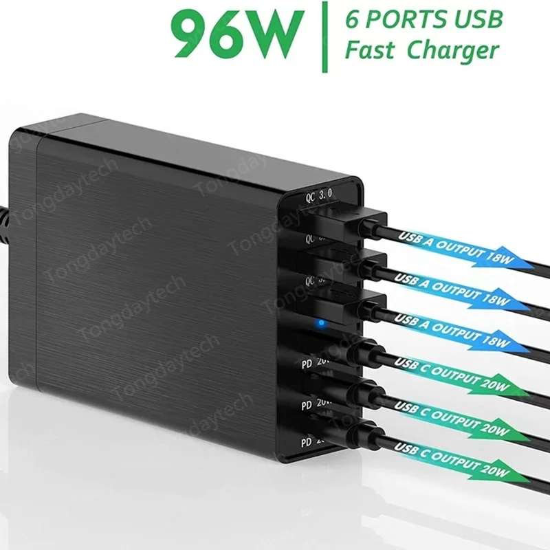Comprar 96W Multifunctional USB PD Fast Charger Type C 20W QC3.0 USB Charging Station for iPhone 14 iPad Samsung S23 Xiaomi Cargadores