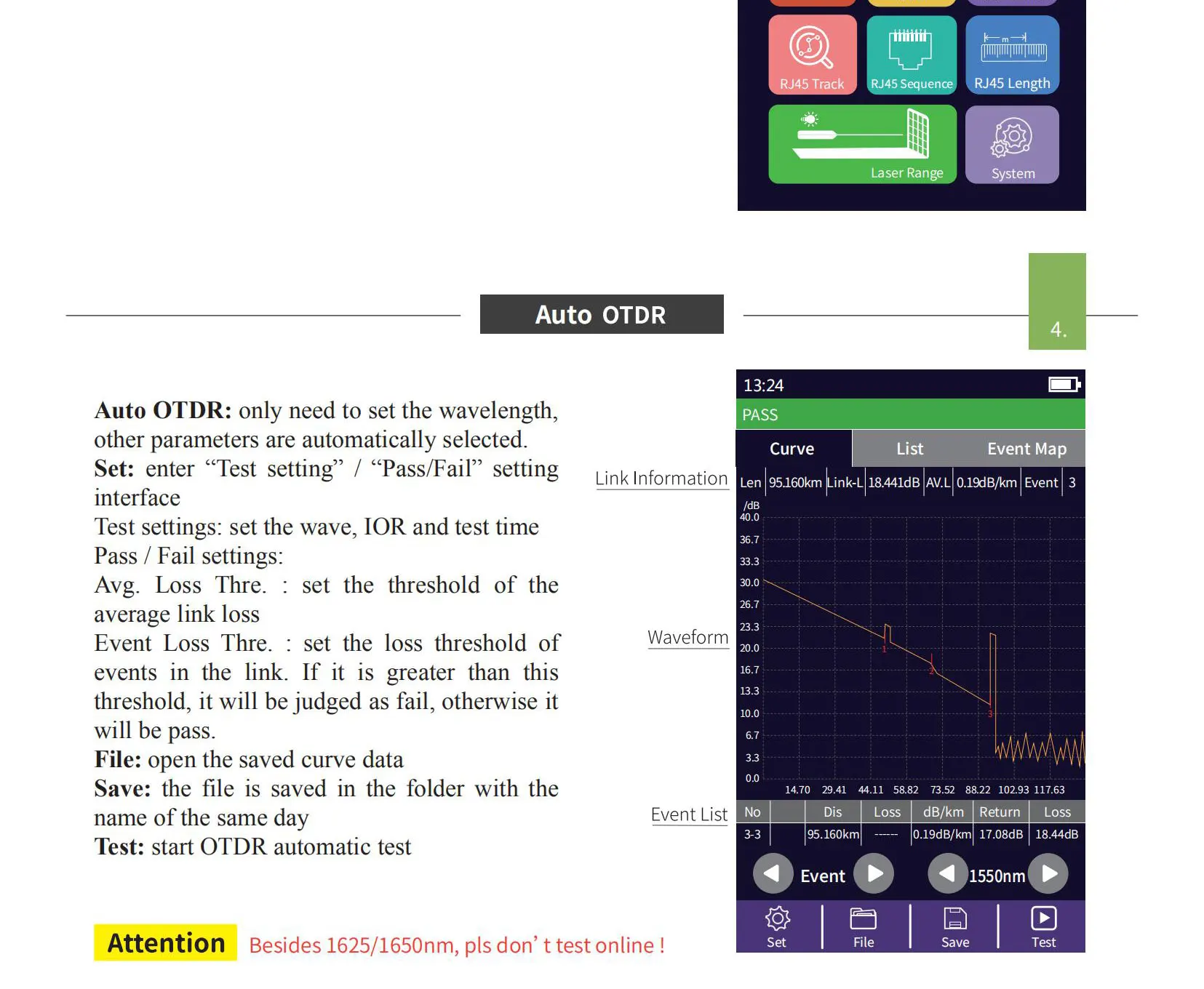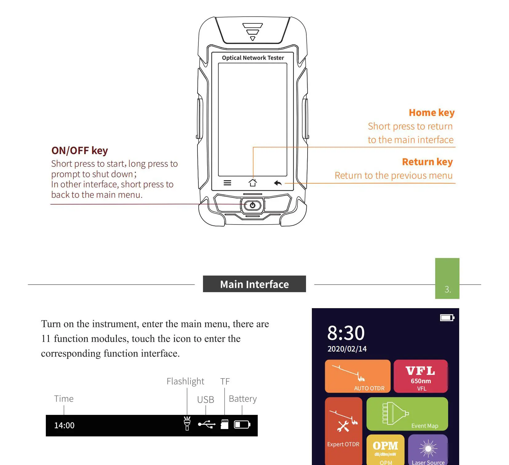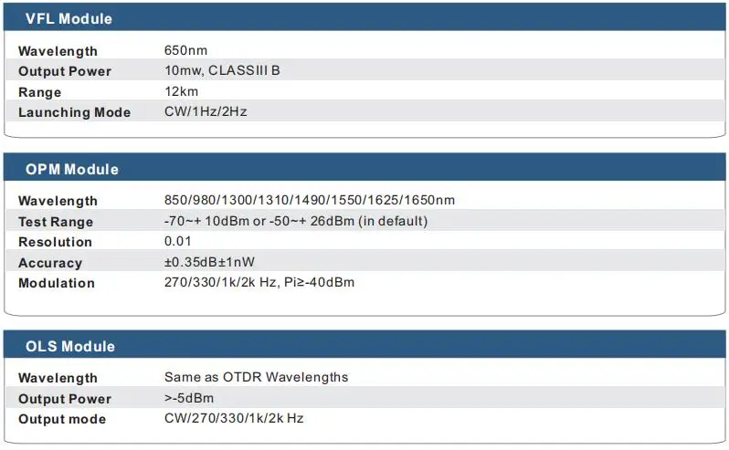 2) Combina todas las pruebas de fibra esenciales en un solo dispositivo de mano con OPM, OLS, VFL, etc.