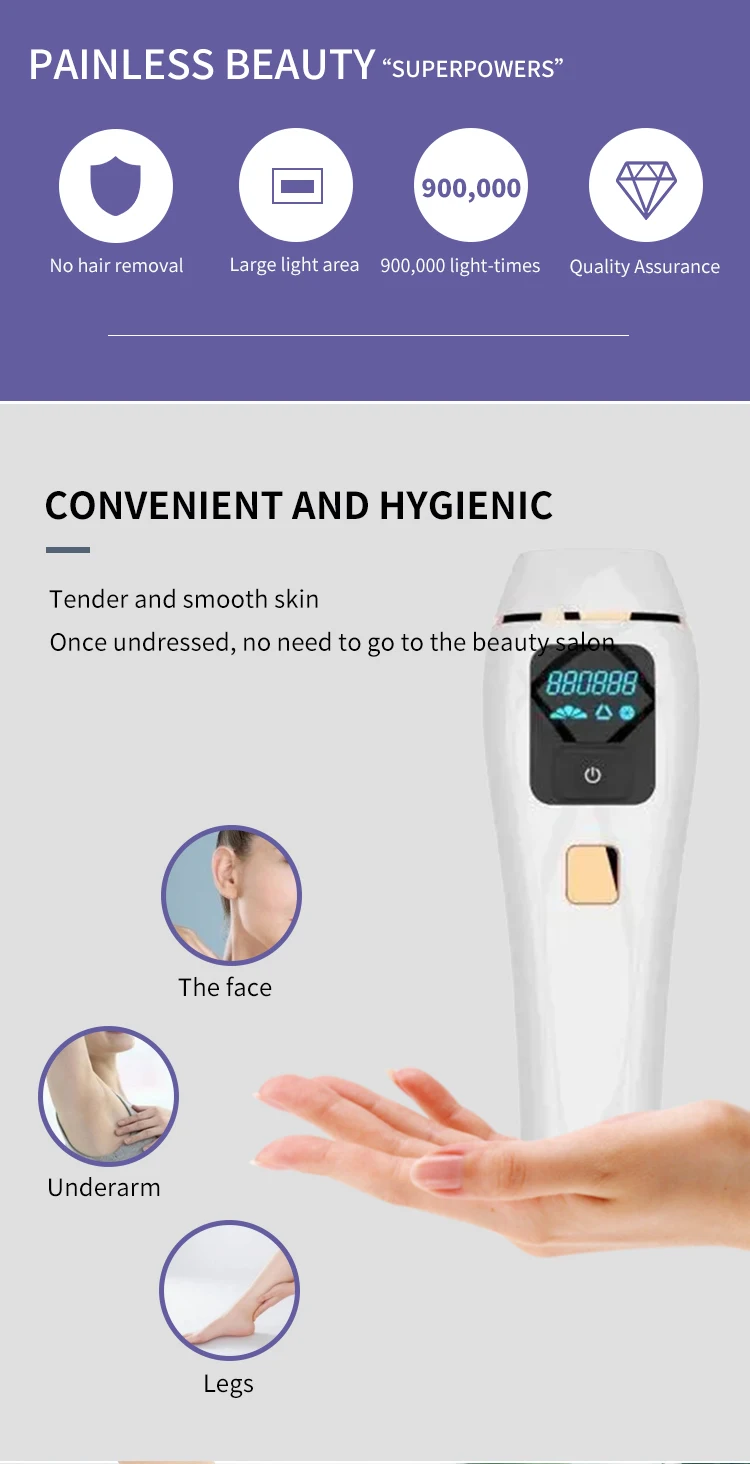 • Eliminación de vello sin dolor :Este epilador IPL ofrece una eliminación de vello sin dolor, ideal para hombres y mujeres que buscan una solución de eliminación de vello cómoda y eficiente.