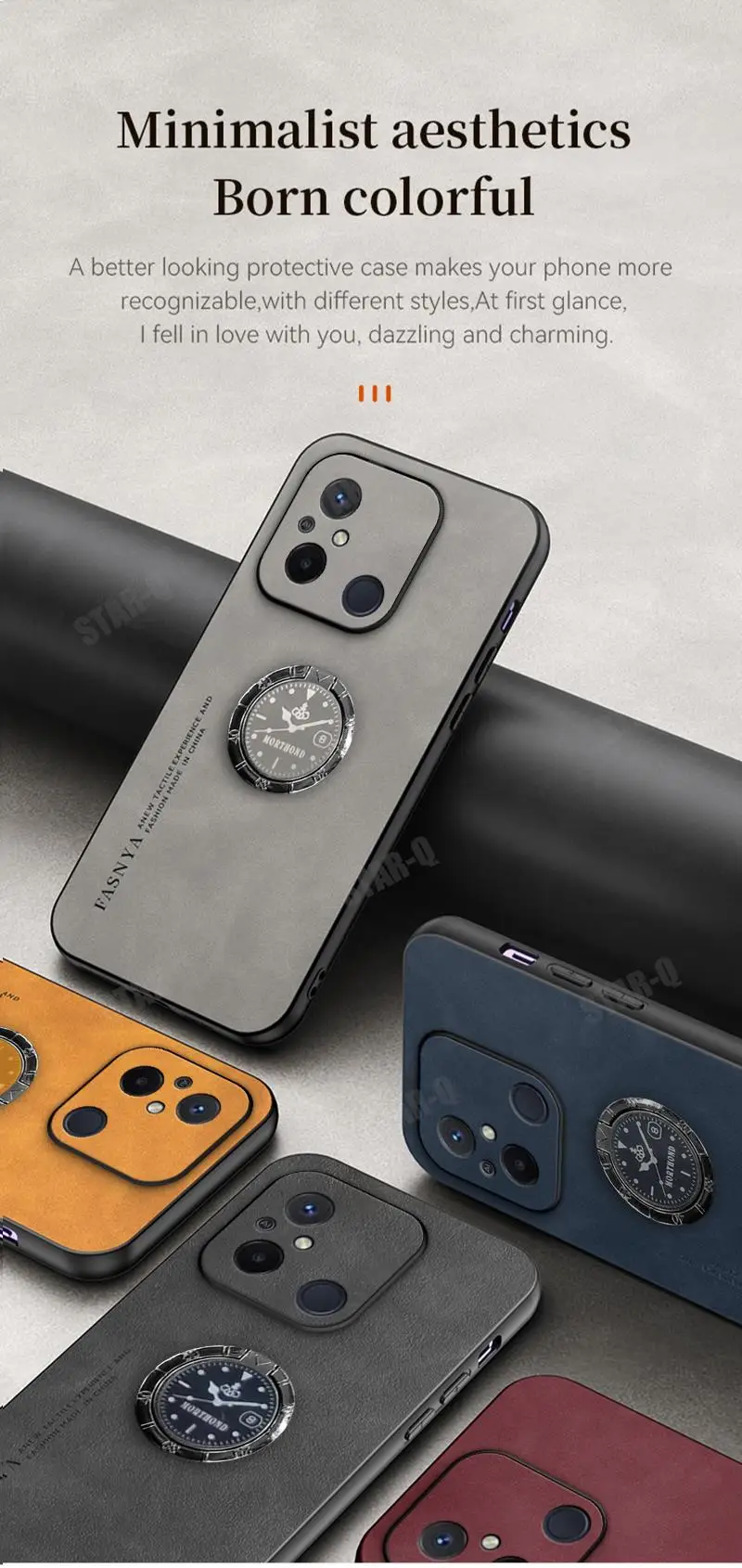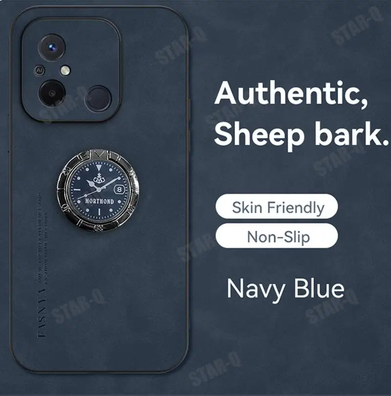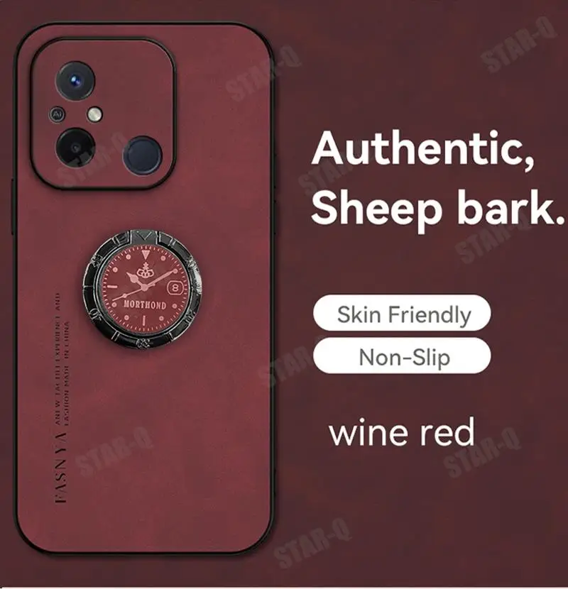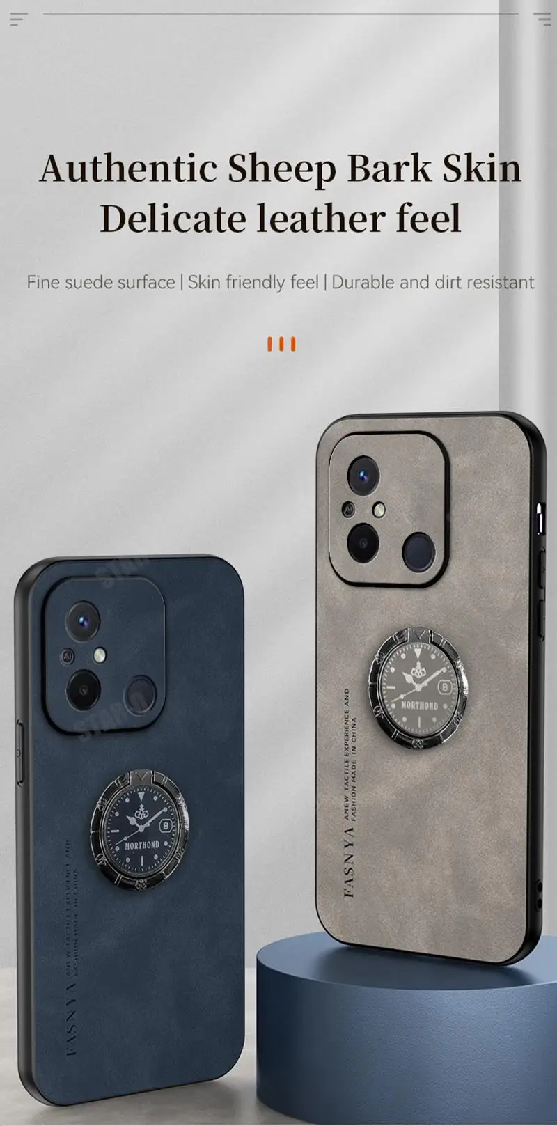 Comprar 9c Nfc 9a 9at anillo de lujo soporte para teléfono Funda de cuero de piel de oveja para Xiaomi Redmi 12c 10c 10A 12 10 C 9 A hombres soporte contraportada