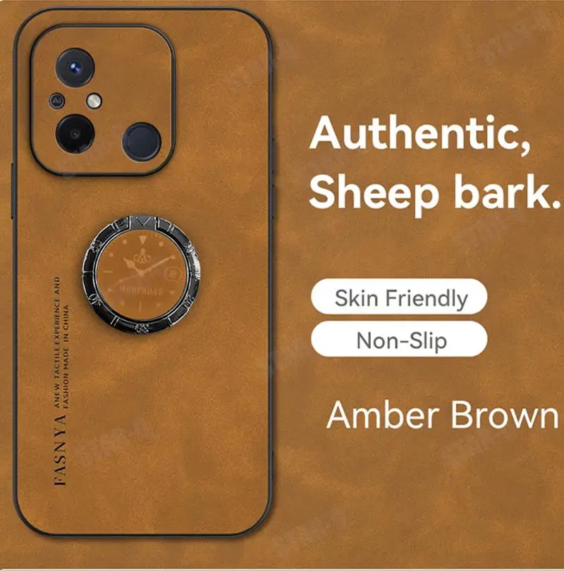 9c Nfc 9a 9at, soporte de teléfono de lujo con anillo, funda de piel de oveja para Xiaomi Redmi 12C 10c 10A 12 10 C 9 A, funda trasera con soporte para hombre