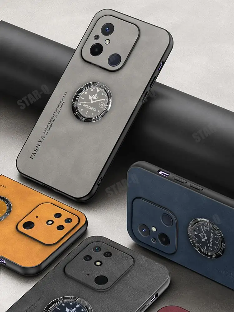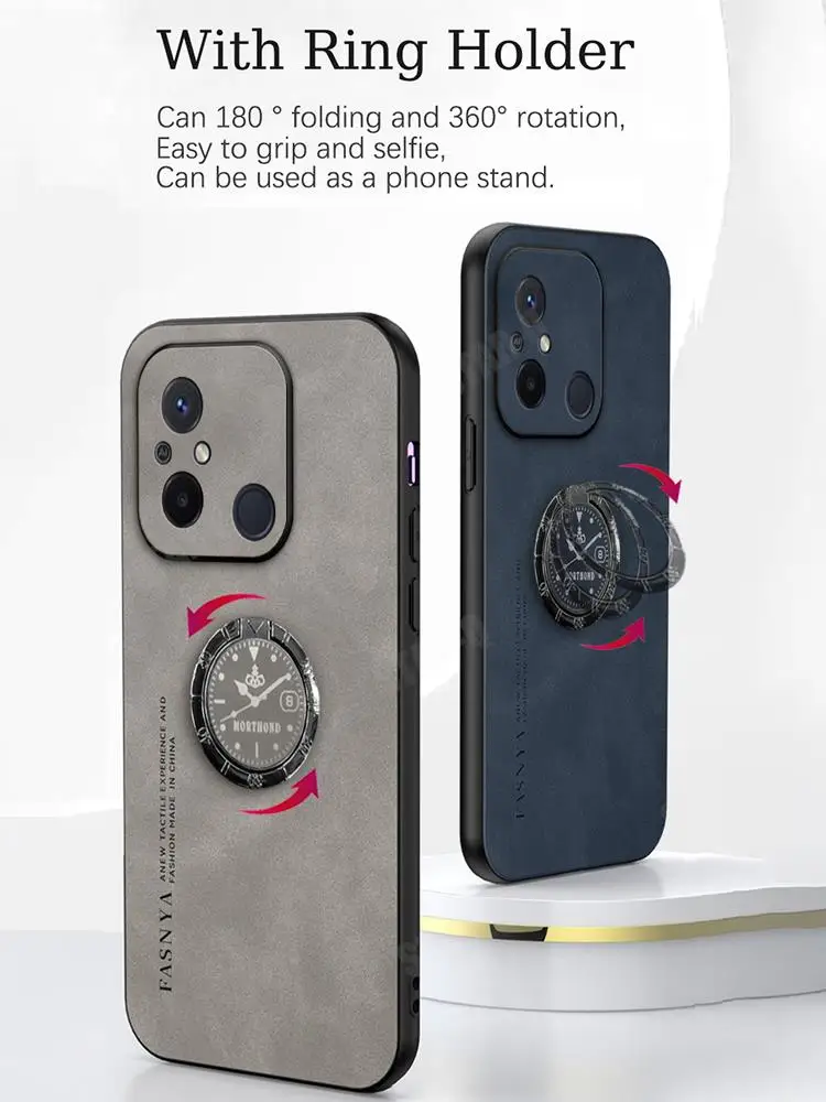 Comprar 9c Nfc 9a 9at anillo de lujo soporte para teléfono Funda de cuero de piel de oveja para Xiaomi Redmi 12c 10c 10A 12 10 C 9 A hombres soporte contraportada
