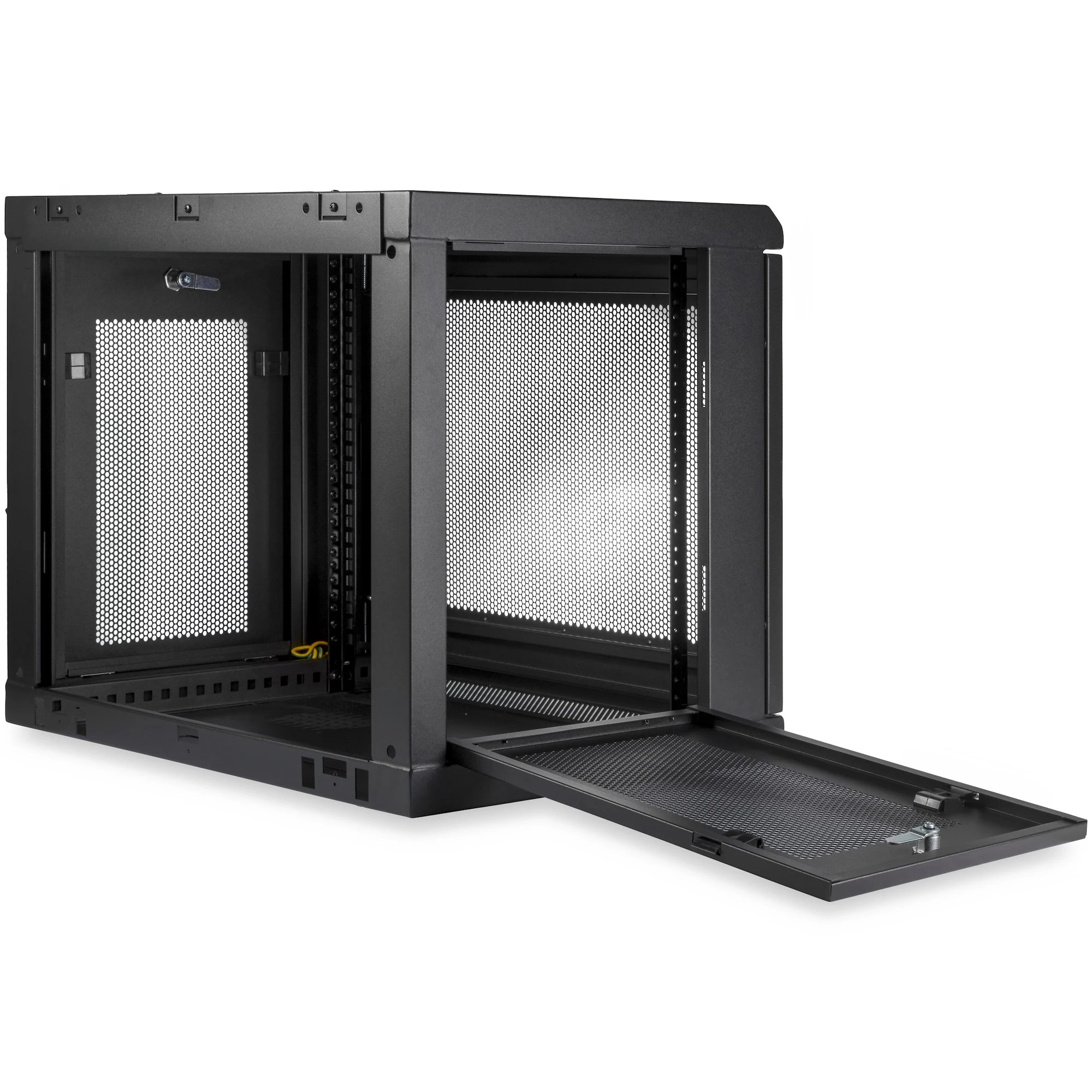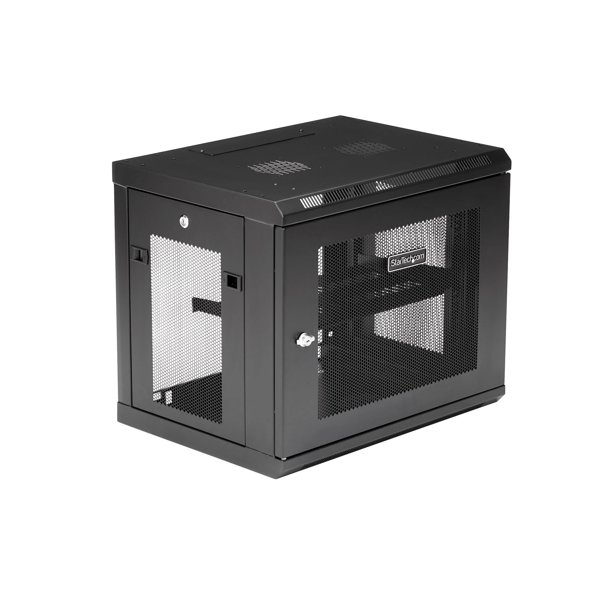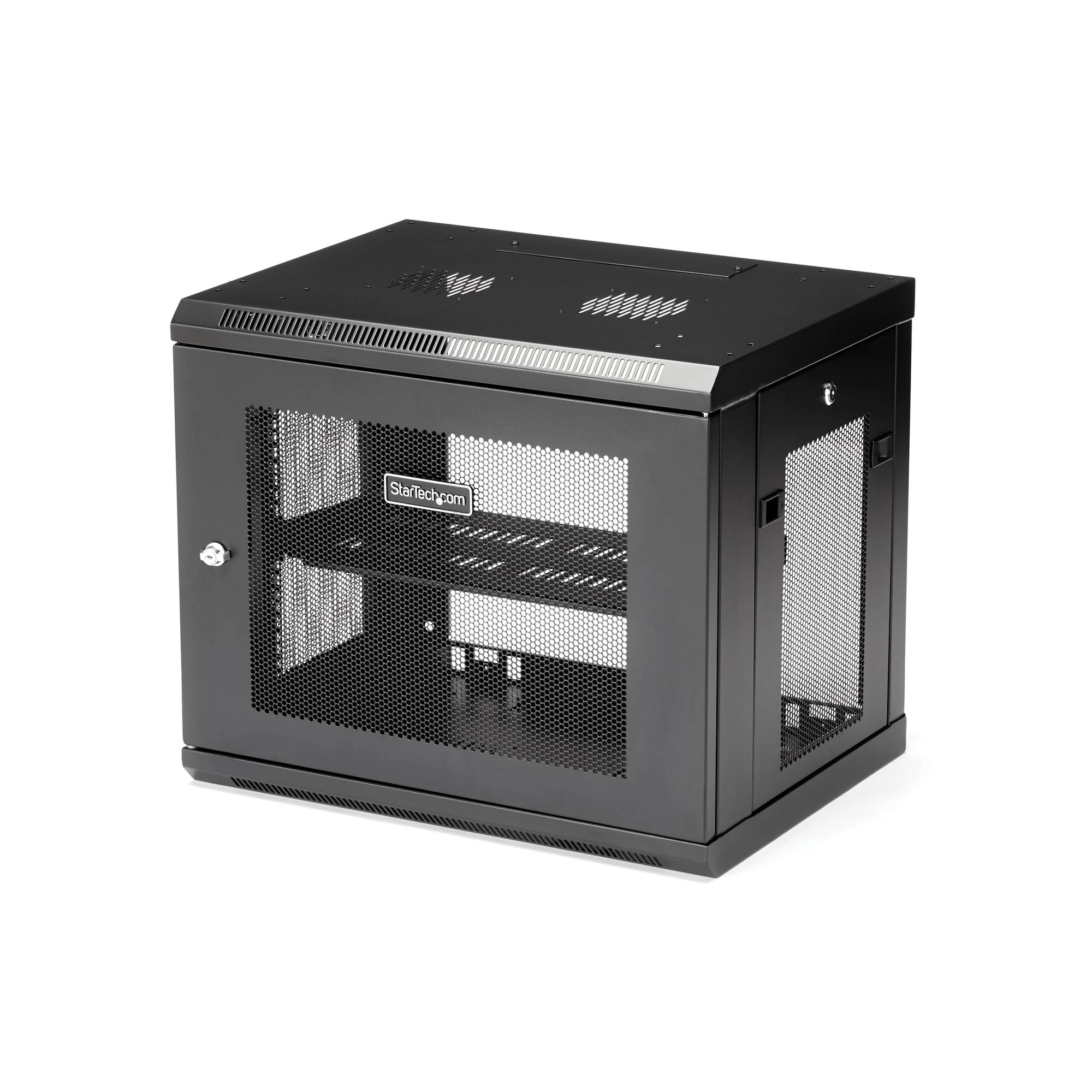 StarTech.com Armario Rack de Servidores 9U de 19" para Montaje en Pared con 2 Columnas - Profundidad Ajustable de 15,2cm a 38,1/6" a 15" - con Ventilación y Cinta de Gancho y Bucle. Tipo: Bastidor de pared, Capacidad del rack: 9U, Capacidad máxima de peso: 90 kg, Bloqueo del teclado, Gestión de cables. Peso: 17,7 kg. Color del producto: Negro