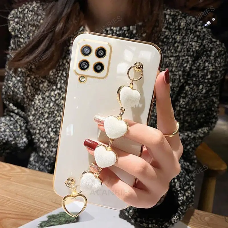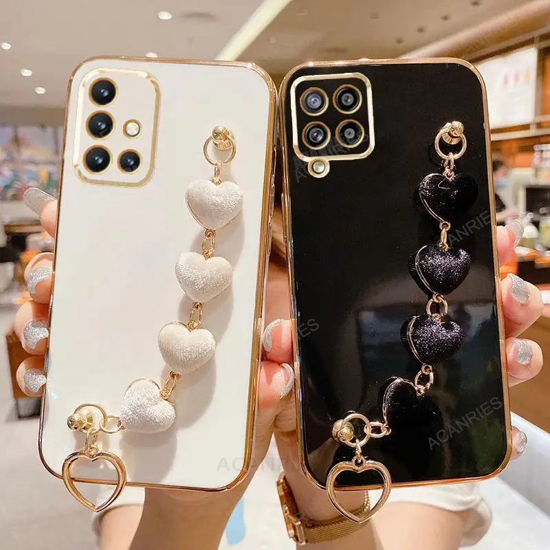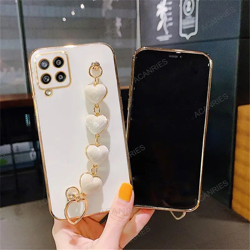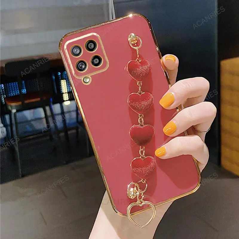 A 12 51 amor corazón muñeca cadena funda de silicona para Samsung Galaxy A12 5g A22 A51 A71 4G A31 M53 M33 cubierta de lujo M 53 33