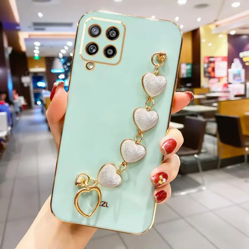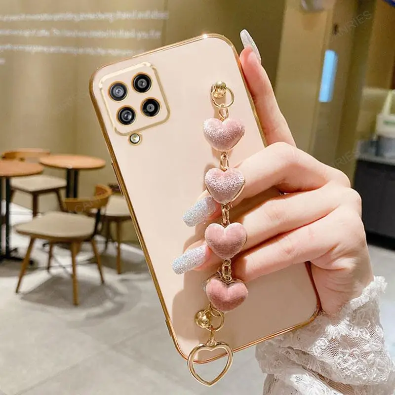 A 12 51 amor corazón muñeca cadena funda de silicona para Samsung Galaxy A12 5g A22 A51 A71 4G A31 M53 M33 cubierta de lujo M 53 33