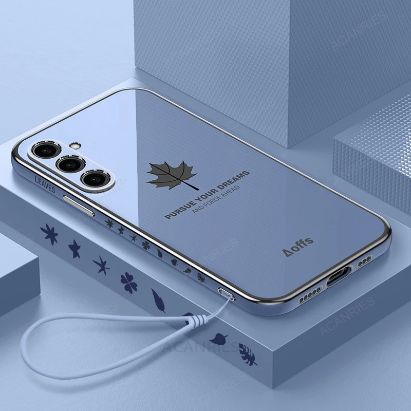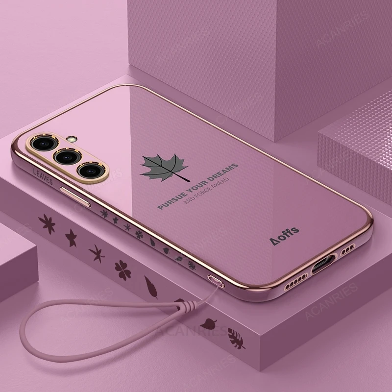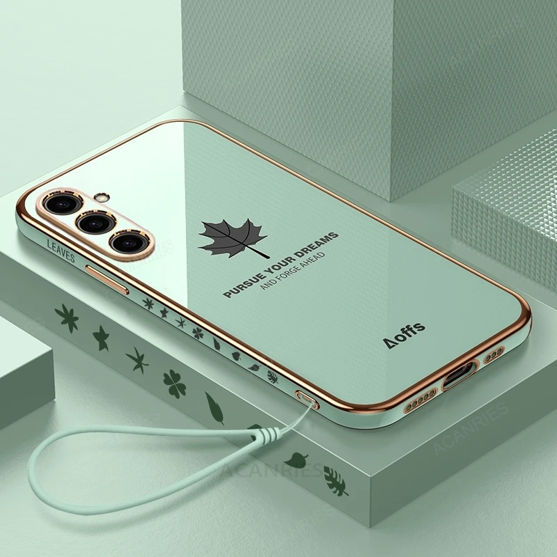 A 15 25 35 55 Funda con cordón de hoja de arce de lujo para Samsung Galaxy A15 A25 A35 A55 4g 5g A14 A24 A34 A54 A05 Funda de silicona chapada
