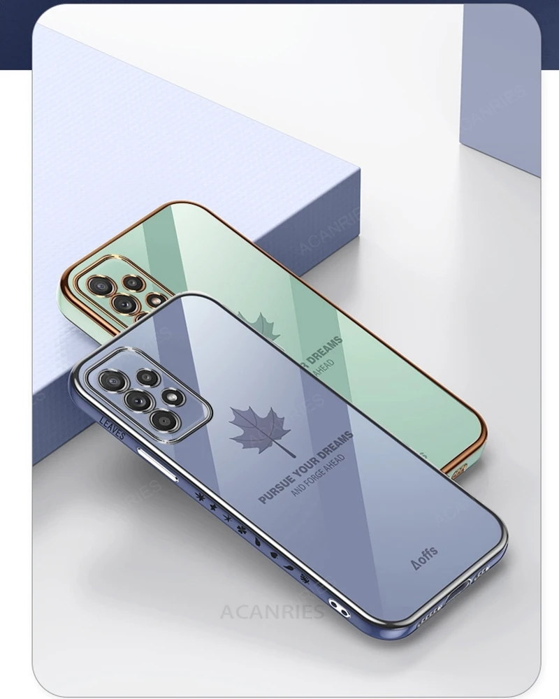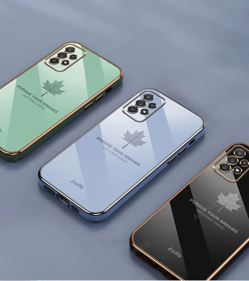 Comprar A 15 25 35 55 funda de lujo con cordón de hoja de arce para Samsung Galaxy A15 A25 A35 A55 4g 5g A14 A24 A34 A54 A05 cubierta de silicona chapada