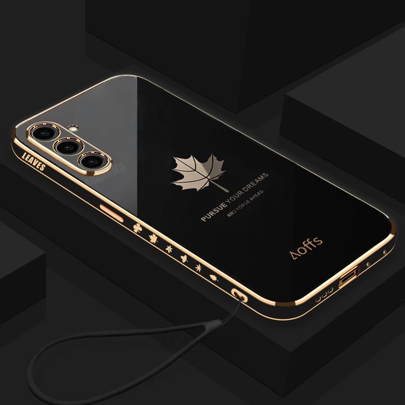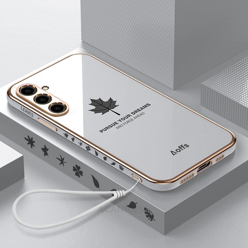 A 15 25 35 55 Funda con cordón de hoja de arce de lujo para Samsung Galaxy A15 A25 A35 A55 4g 5g A14 A24 A34 A54 A05 Funda de silicona chapada