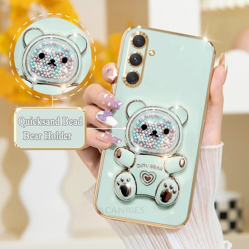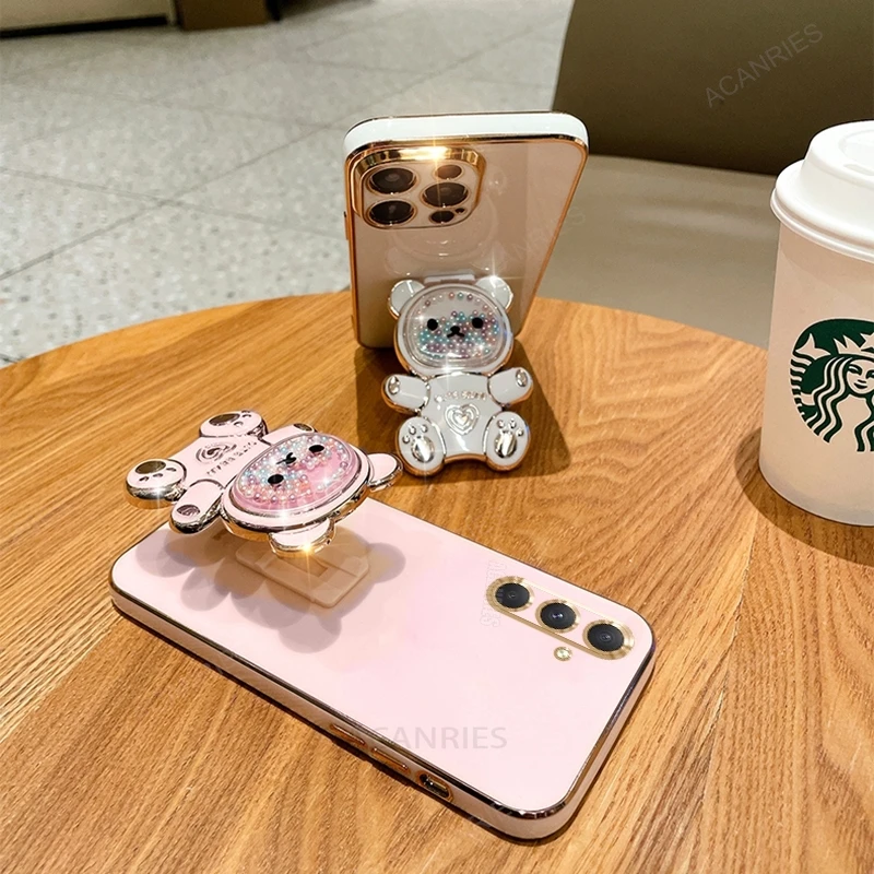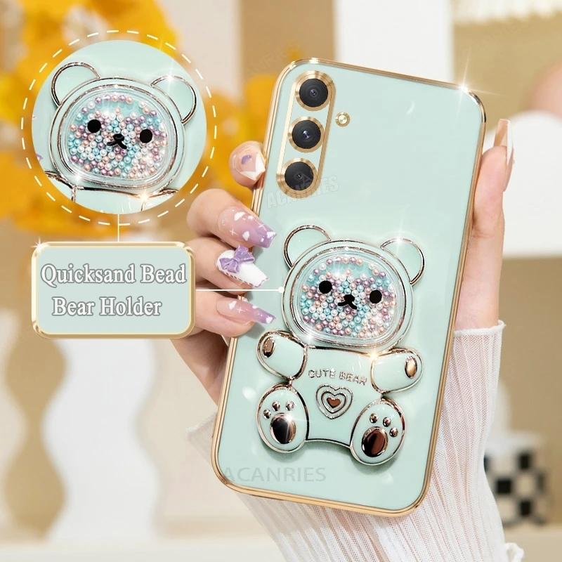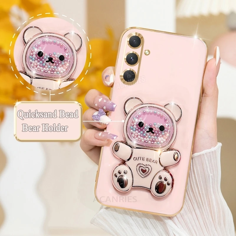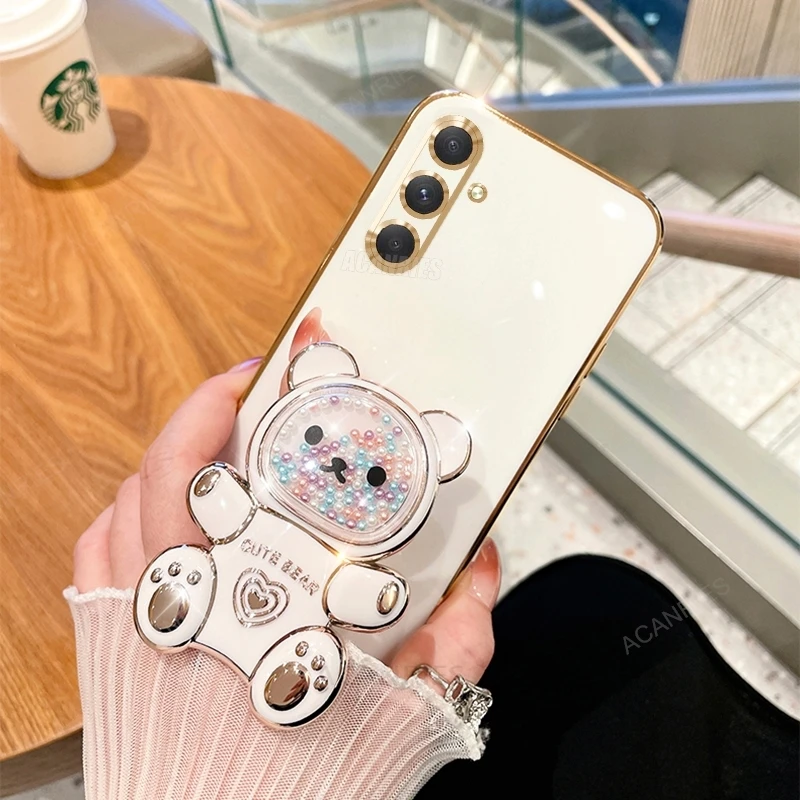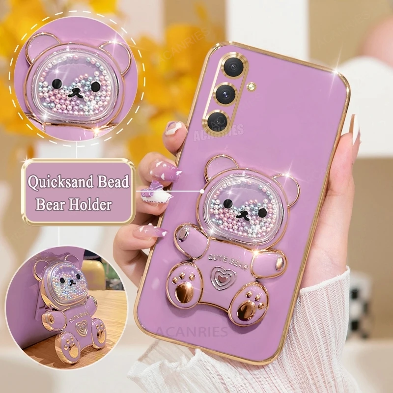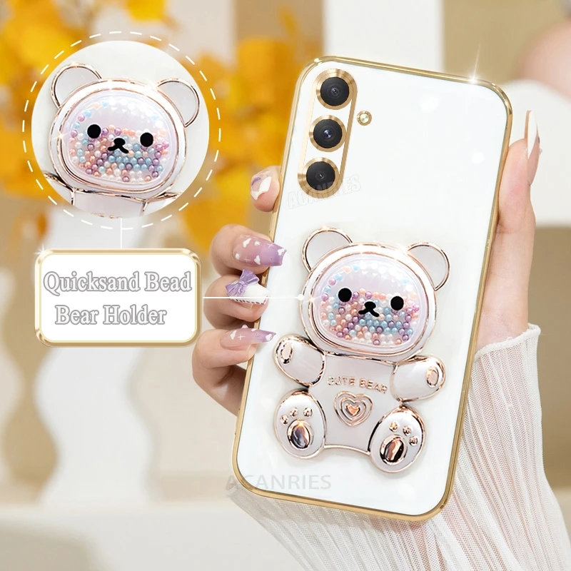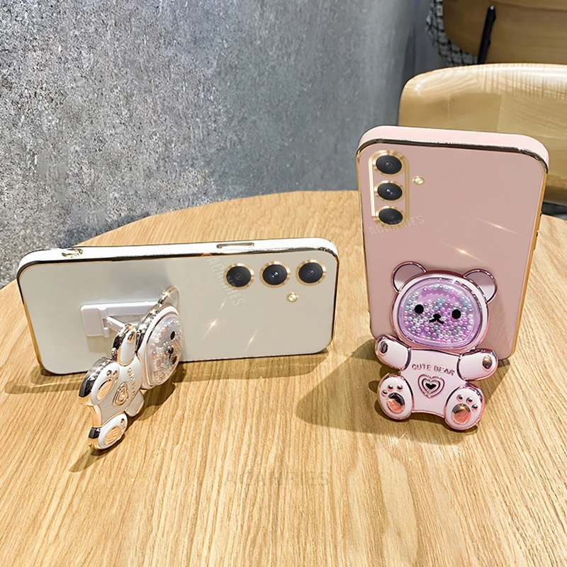 A 16 15 55 54 Funda chapada con soporte de oso de lujo para Samsung Galaxy A16 A15 A55 A54 A34 A35 5g Funda con soporte de silicona S24 Fe S25 Plus
