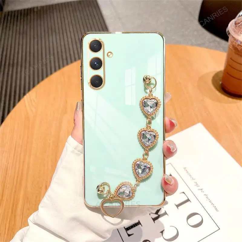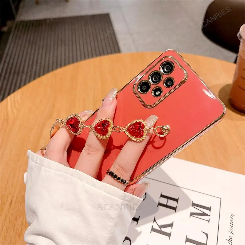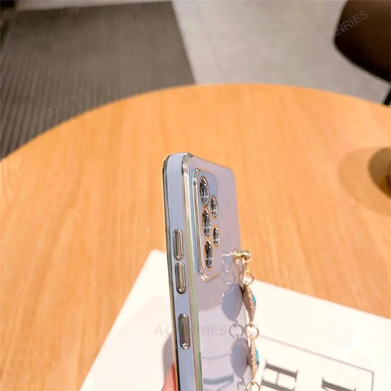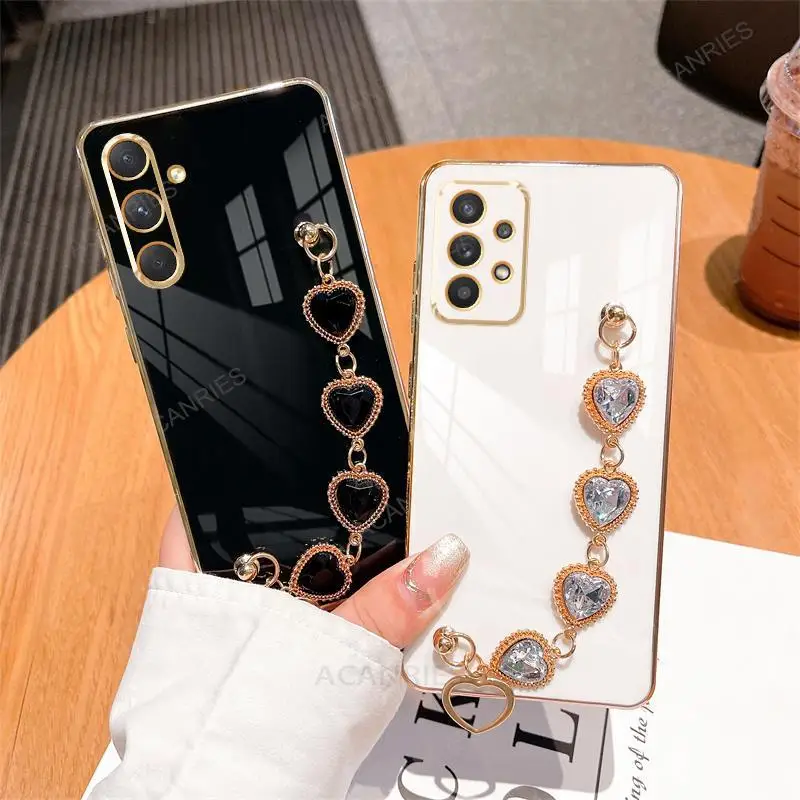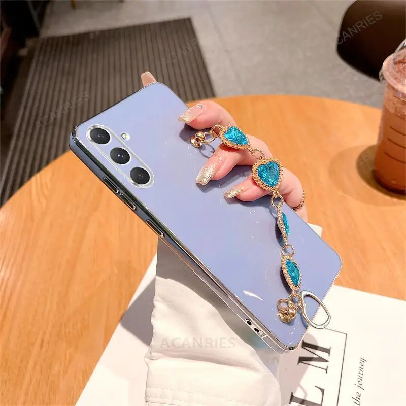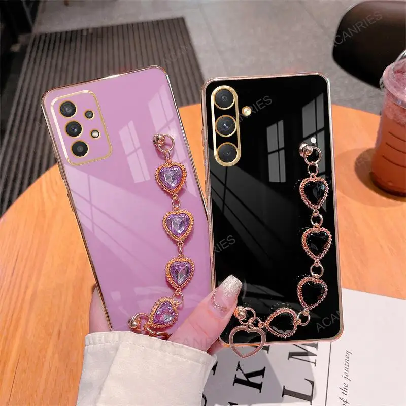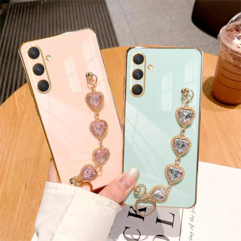 A 34 54 14 24 funda de pulsera de cadena de lujo para Samsung Galaxy A54 A34 A14 5g A24 A04s M54 M52 M14 A25 funda de muñeca de silicona chapada