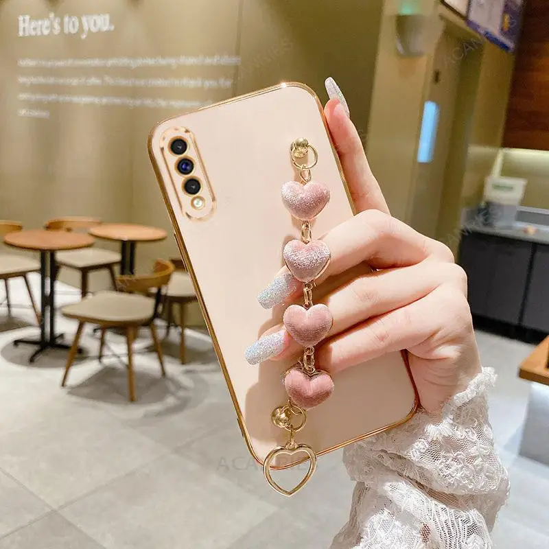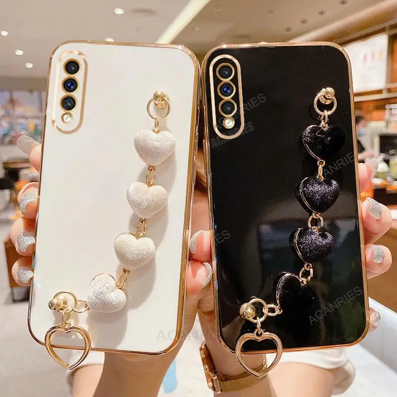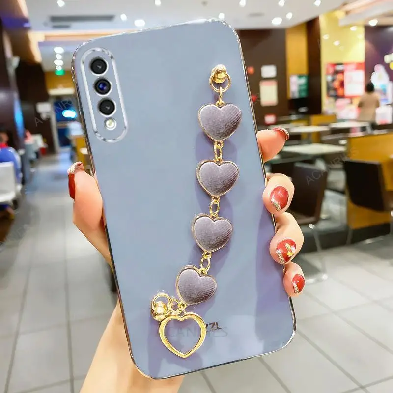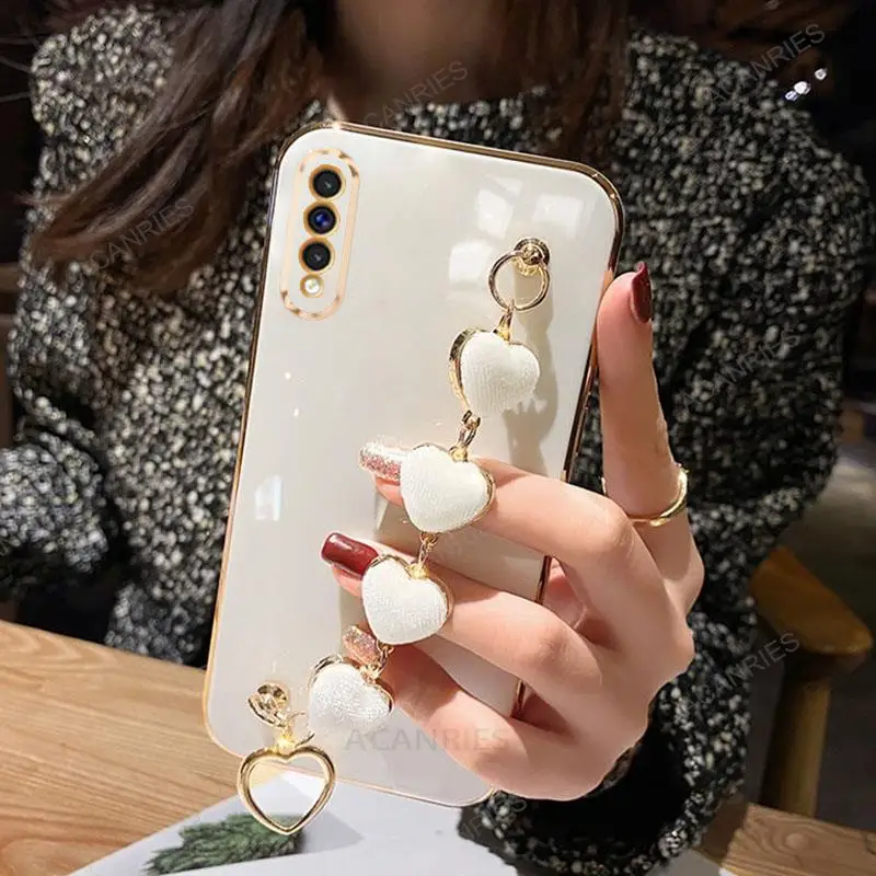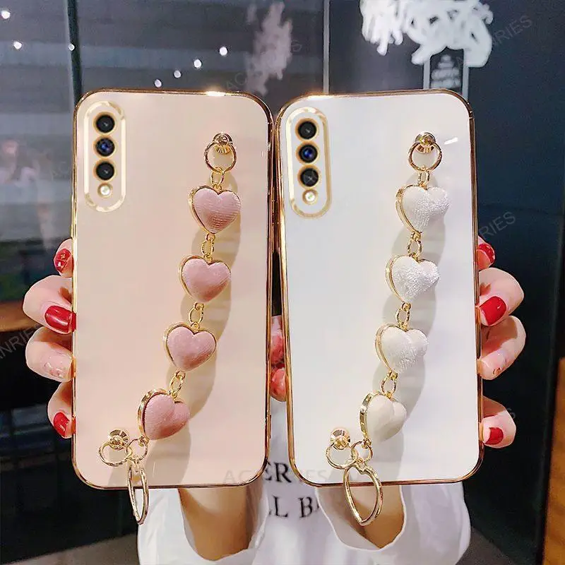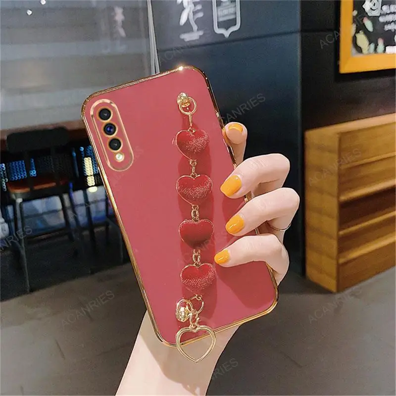 Funda de silicona con cadena de muñeca y corazón de amor para Samsung Galaxy A50 A70 A30s A21s A30 A20 A51 A71 A50s, funda chapada de lujo A20s