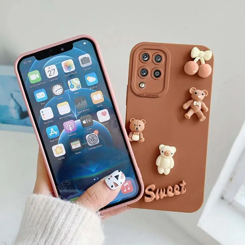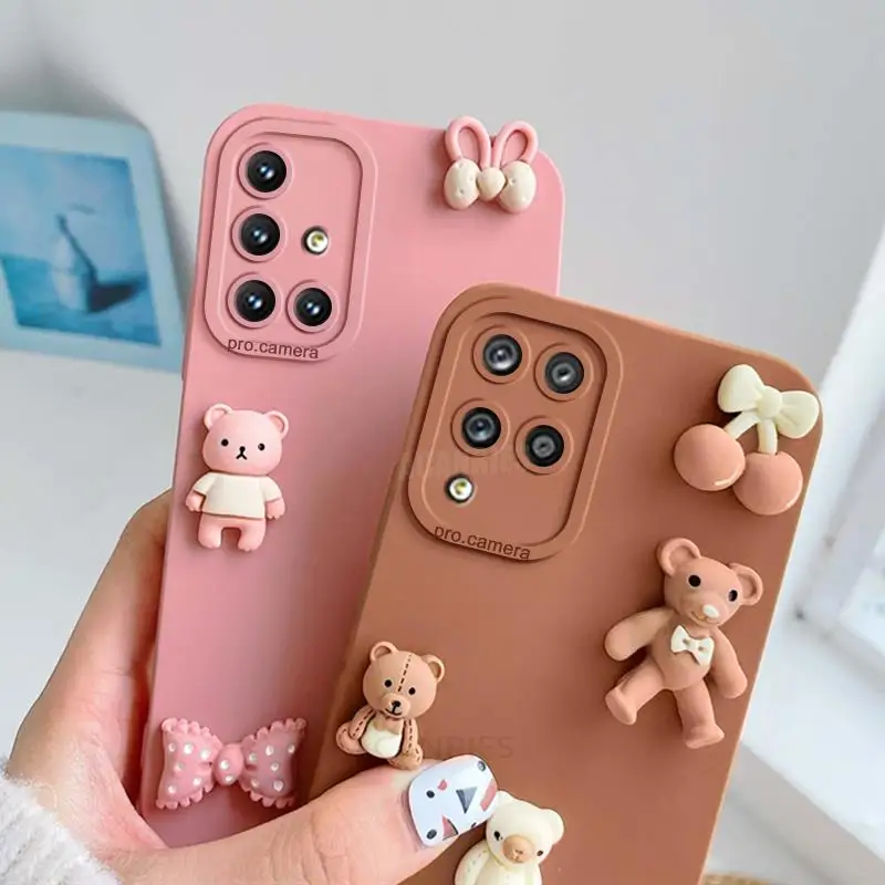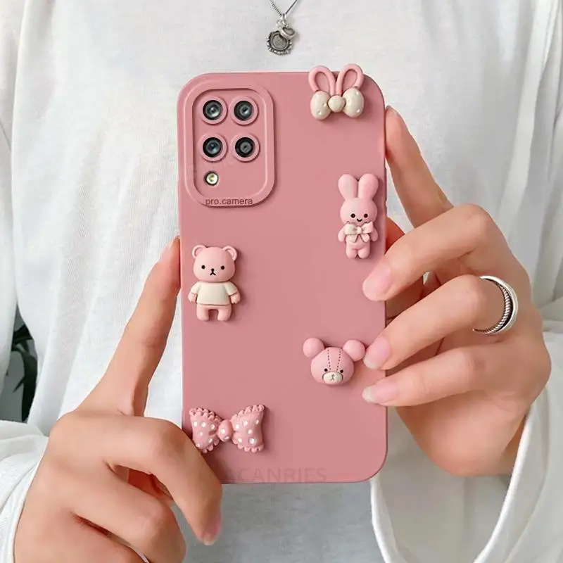 A 51 71 12 22 Linda funda de silicona con osos 3D para Samsung Galaxy A12 A51 A71 A31 A22 4g A21s A20s M53 M33 5g M12 funda trasera de dibujos animados
