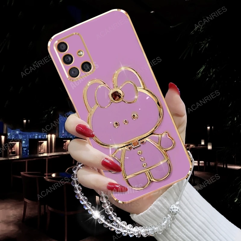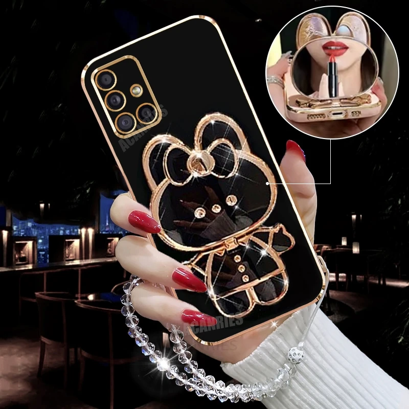 A 51 71 31 12 funda con cordón y soporte de espejo chapado para Samsung Galaxy A51 A71 4g A31 A12 5g A22 A50 A70 M53 M33 M51 funda de silicona