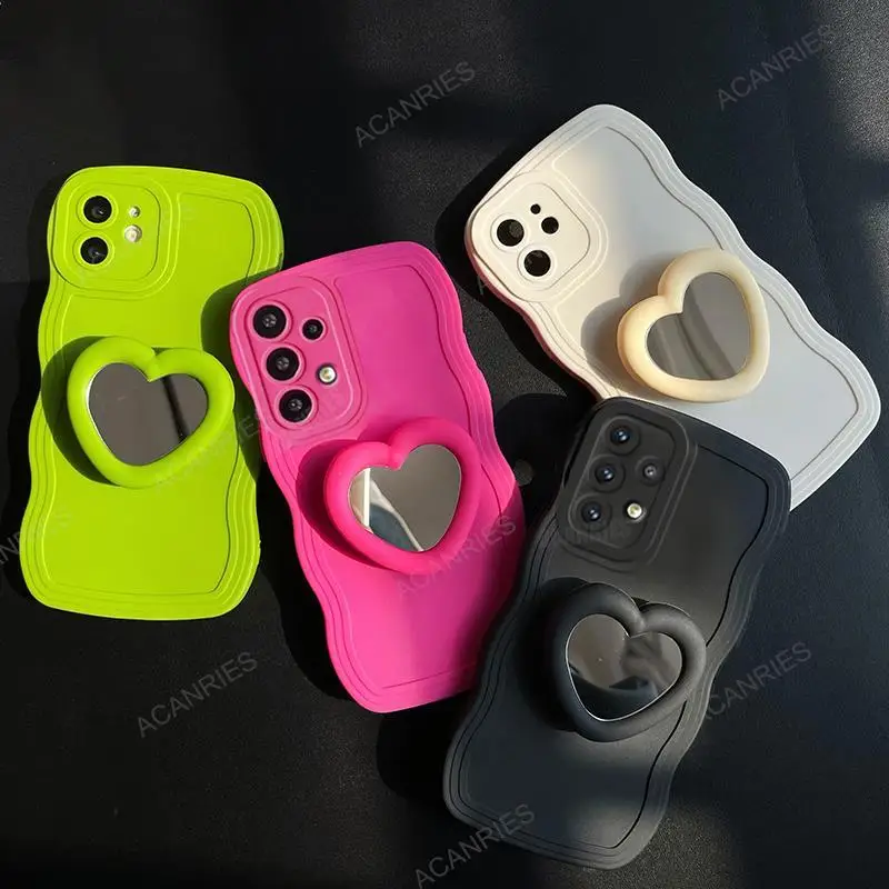 A 52 53 13 funda ondulada y rizada con soporte de corazón de amor para Samsung Galaxy A52 A53 A13 A23 A33 A72 A73 A32 4g 5g funda de silicona con soporte