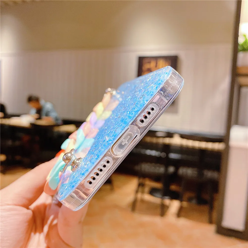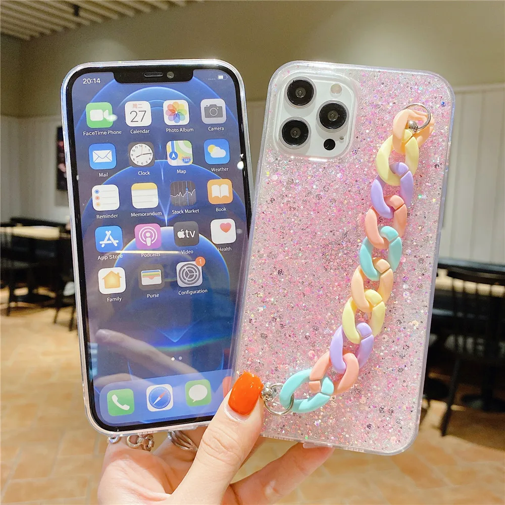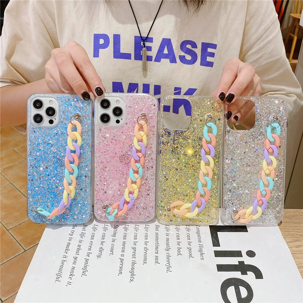 Comprar A 54 34 14 Color caramelo cadena para la muñeca funda con purpurina para Samsung A54 A34 A14 A24 A25 A35 A55 A13 A23 A33 A53 A52 A32 funda para pulsera