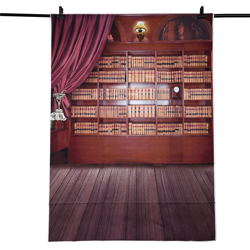 A28Q-2X Libros de biblioteca vintage Piso de madera Fondos de fotografía Accesorios de fotografía Fondo de estudio 5X7 pies