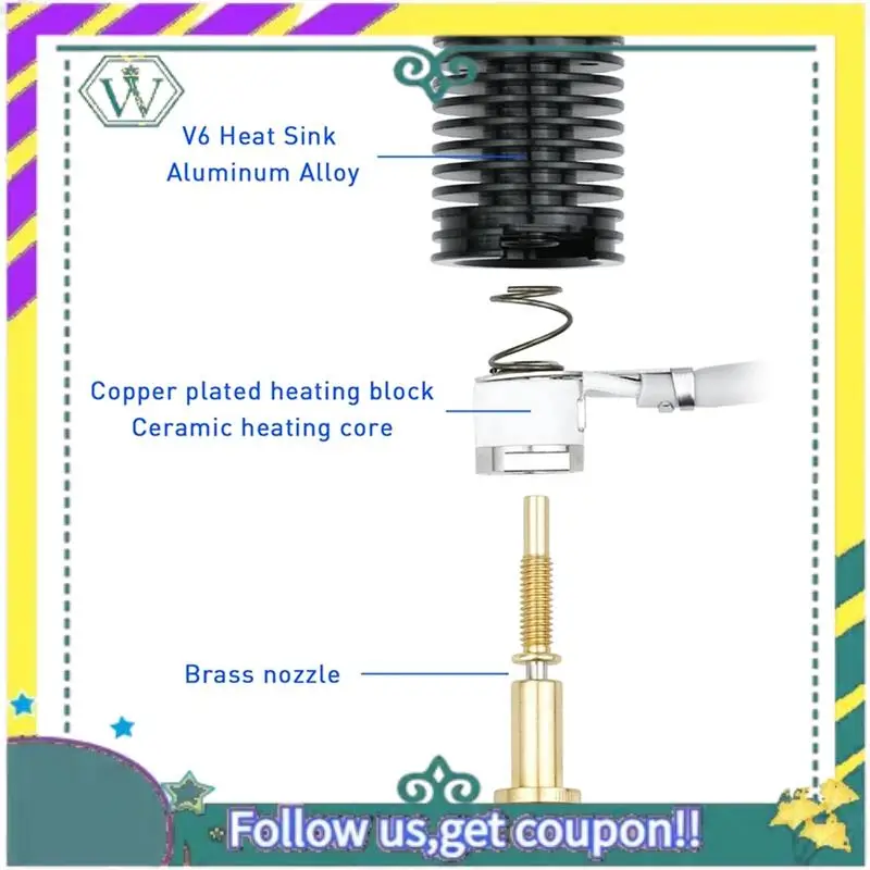 A28Q-para E3D Revo Hotend Kit V6 Boquilla de latón para radiador Núcleo de calentamiento Termistor 104Nt para acceso a piezas de impresora 3D Revo