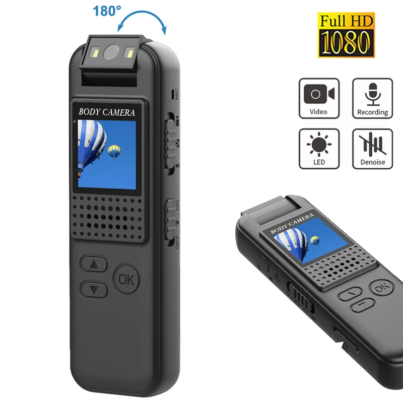 A28Q-Mini cámara corporal 1080P grabadora de vídeo Digital portátil 180° Cámara de visión nocturna por infrarrojos DV Camcorde Micro Bodycam