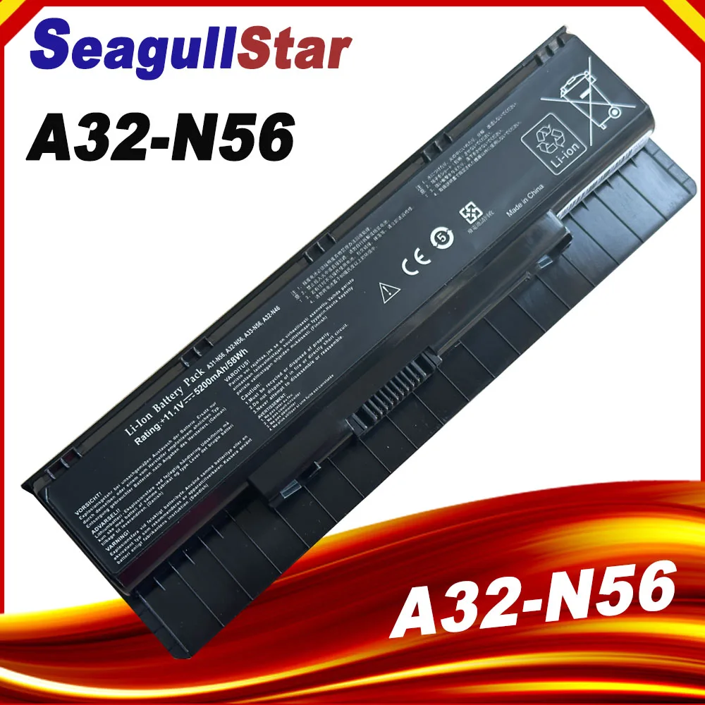 Batería para portátil A31-N56 para ASUS A32-N56 A33-N56 N46 N76 N56 N46V baterías N56V B53V B53A F45A F45U N76V R500N N56D batería