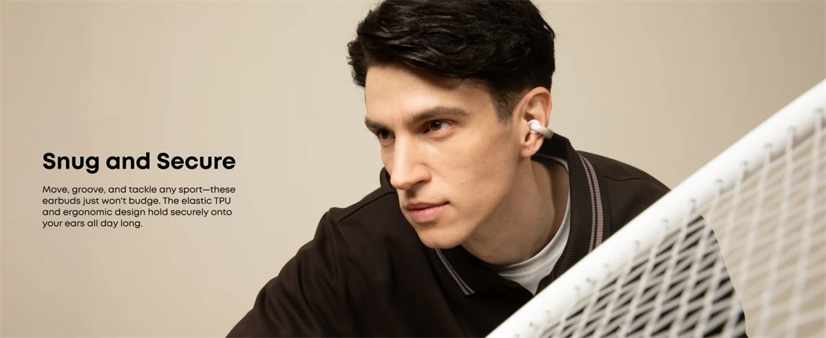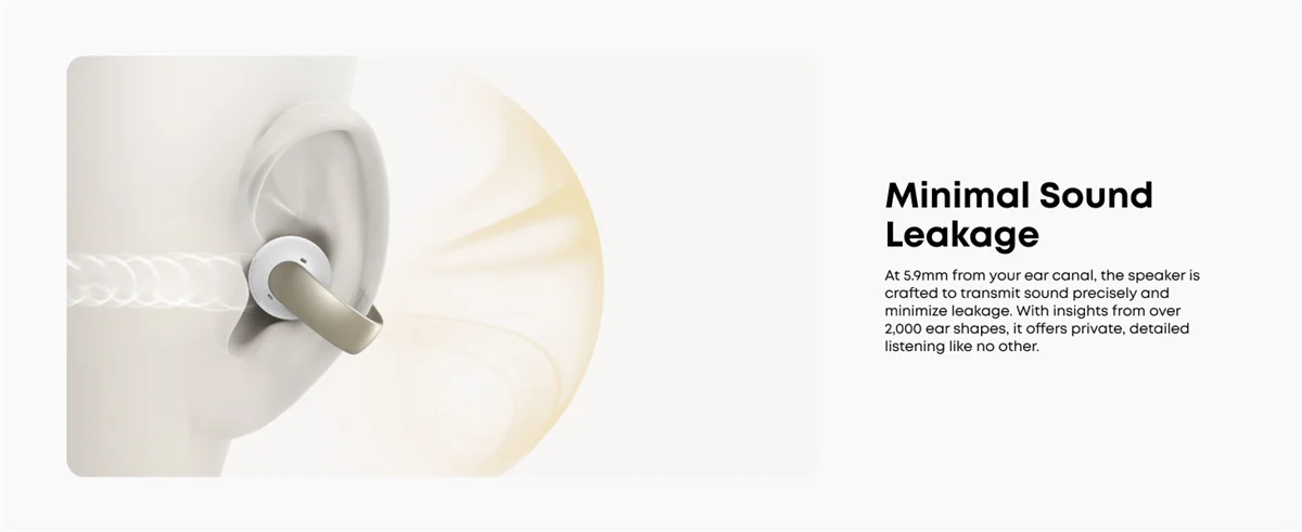 2.Diseño de anillo abierto flexible: garantiza un ajuste seguro para todos los tamaños de oreja con un cómodo diseño de anillo abierto hecho de alambre de titanio con memoria de 0,5 mm y TPU suave.