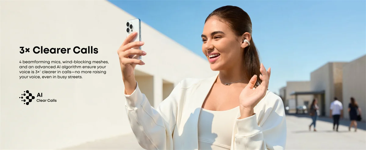 4.Llamadas claras de 4 micrófonos mejoradas por IA: algoritmo de IA avanzado y cuatro micrófonos de formación de haz para llamadas significativamente más claras.