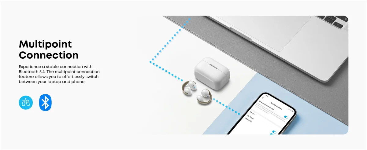 1.Chip Bluetooth V5.4 avanzado: disfrute de una conectividad rápida y fluida con bajo consumo de energía utilizando la última tecnología Bluetooth V5.4, lo que garantiza una experiencia inalámbrica estable y eficiente.