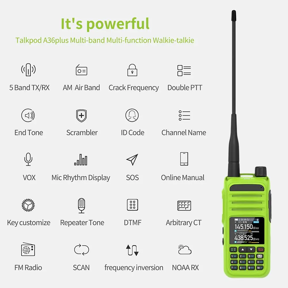 Comprar A36plus walkie-talkie multibanda, Radio de voz inalámbrica, UHF/VHF/AM/FM, programación de largo alcance, dispositivo comunicador de Radio
