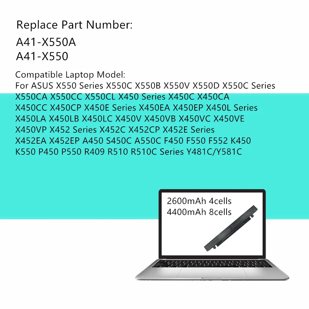 Comprar A41-X550A batería del ordenador portátil para Asus R409 R409C X452E R409L R409V K550L X452C X450V R510 R510C R510D R510E R510L R510V X450 X450C