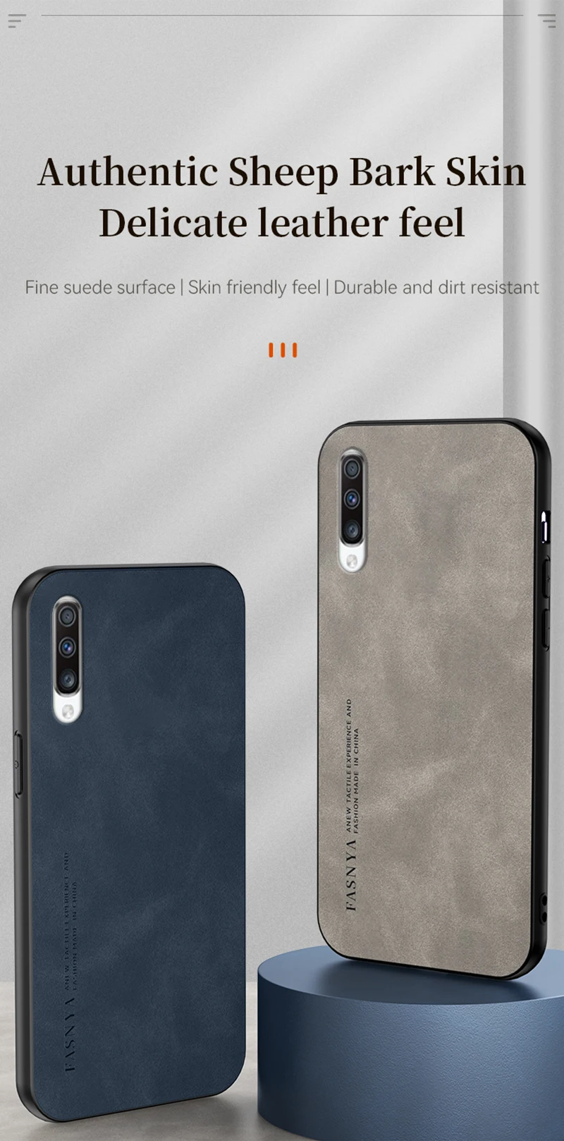 A50s A 50 30 70 11 10 Funda de piel de oveja de lujo para Samsung Galaxy A50 A30S A70 A7 2018 2019 A10 A11 A03 A04 Funda trasera para hombre