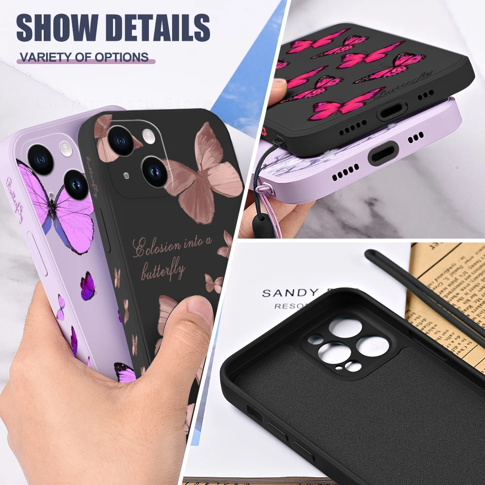 Funda de teléfono de silicona con mariposa para Samsung Galaxy A55 5G A54 A53 A34 A52 A52S 4G 5G A32 4G funda con flores líquidas Coque A55 5G